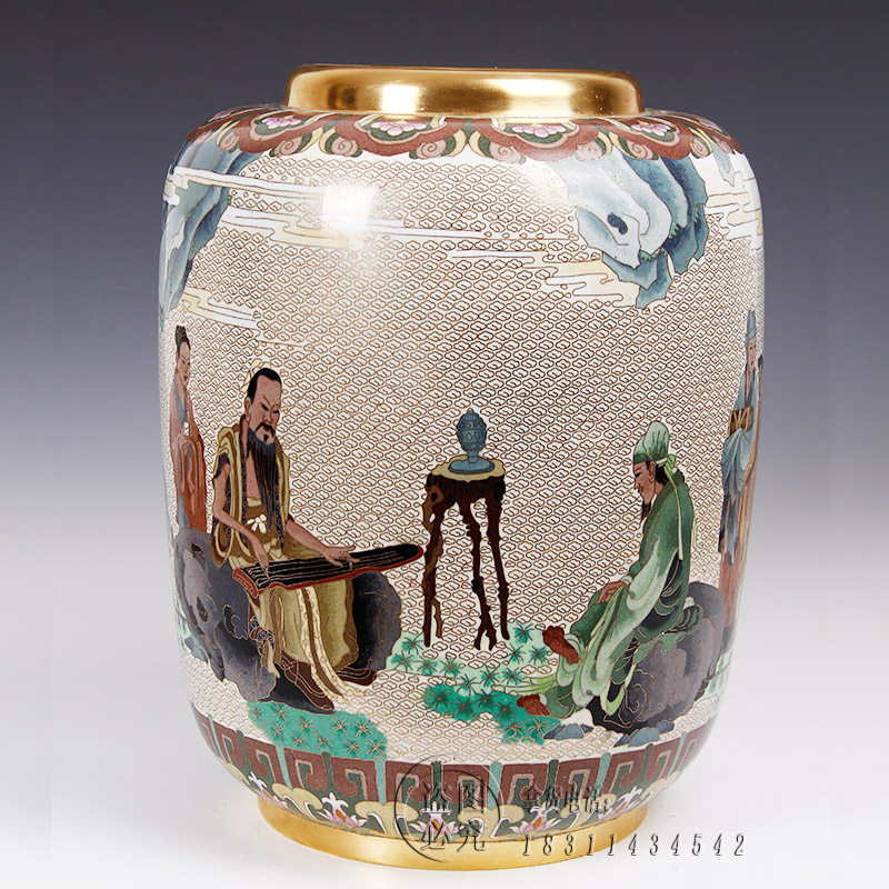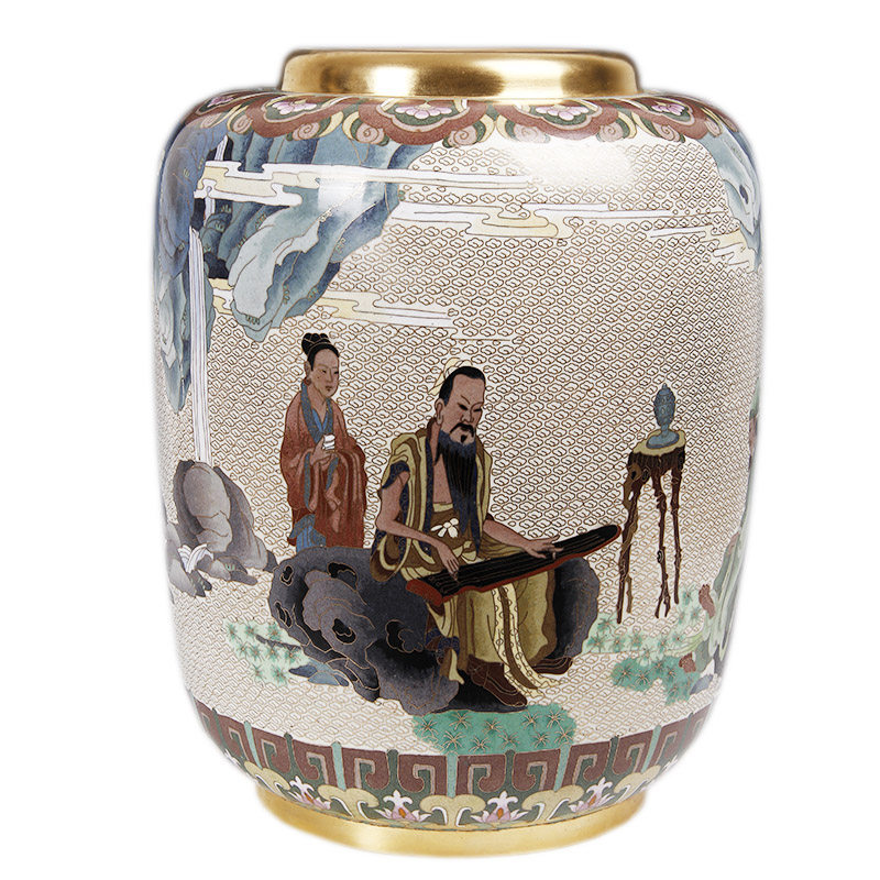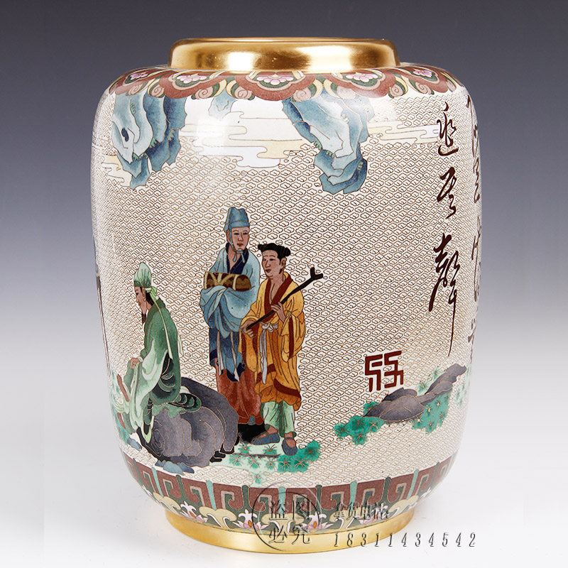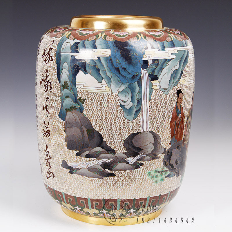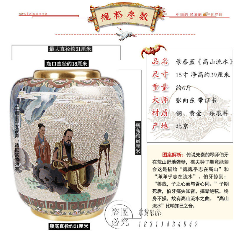 📚 张向东带证书北京景泰蓝花瓶15寸高山流水传统家具装饰礼品摆件