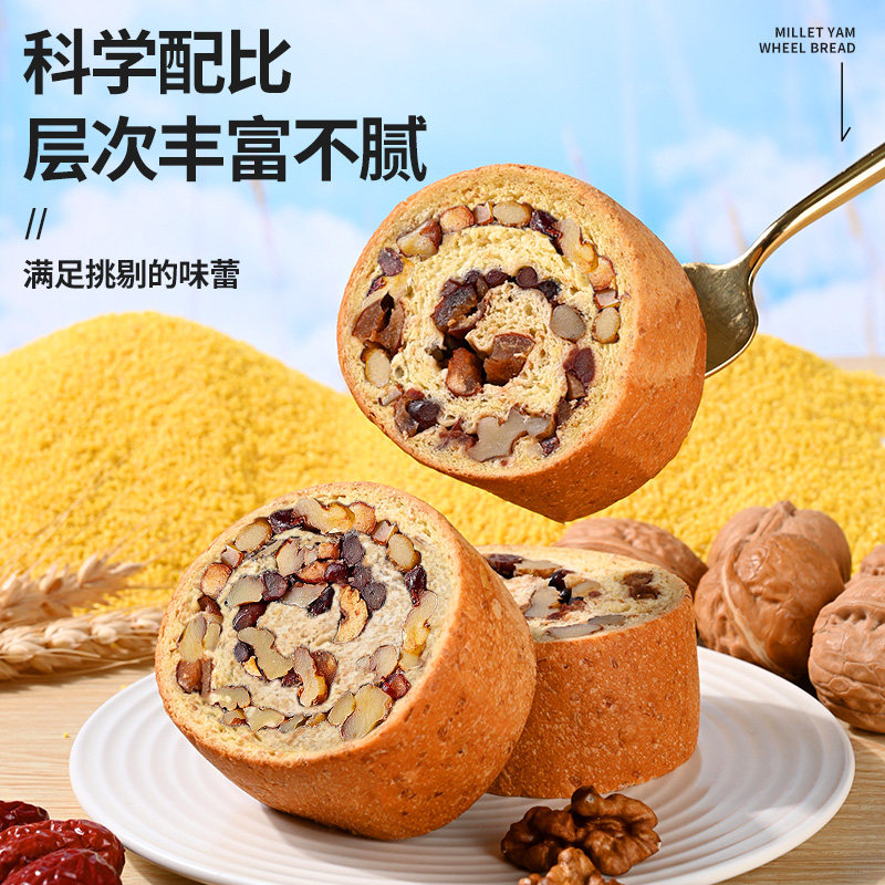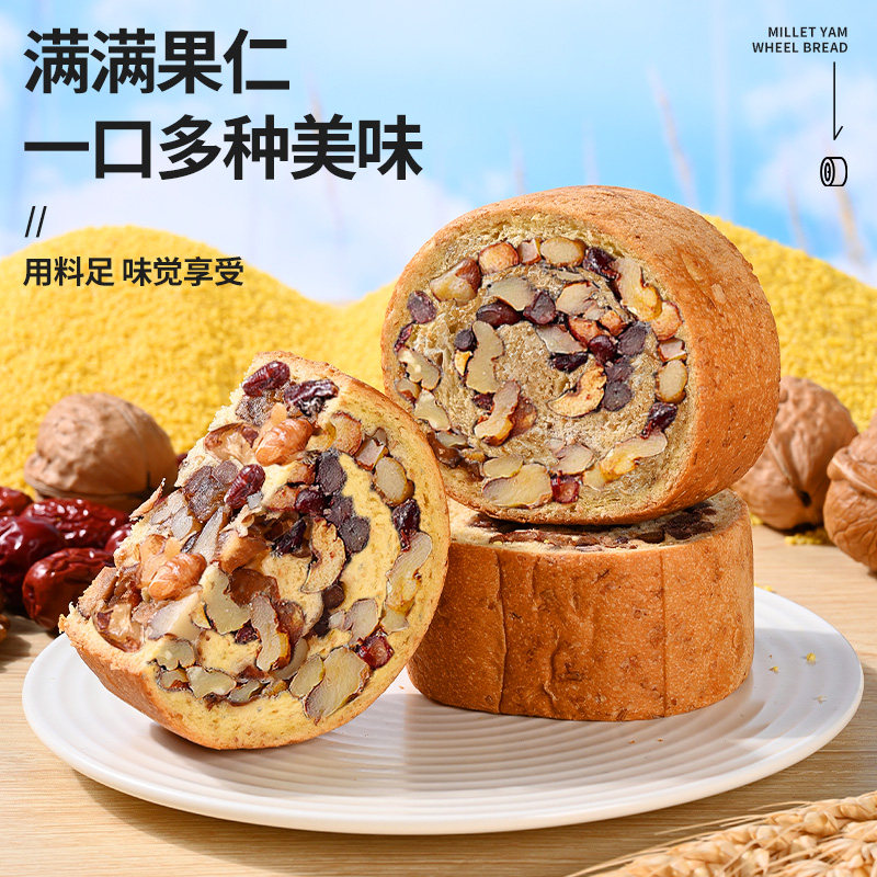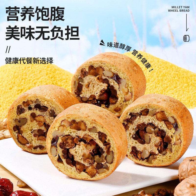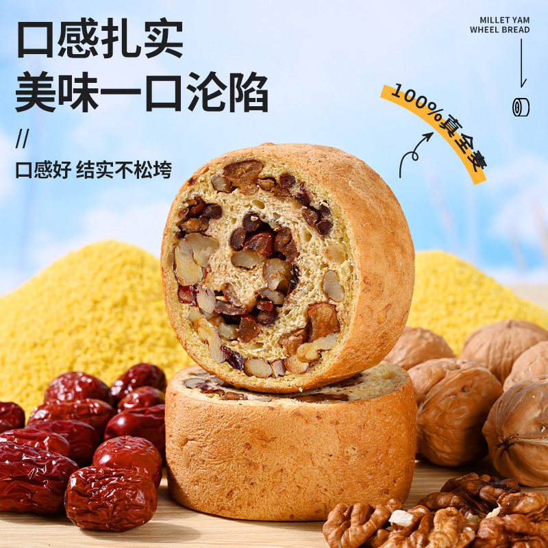 📚 小米山药全麦面包果仁车轮饼坚果欧包减低0添蔗糖早餐脂代餐零食