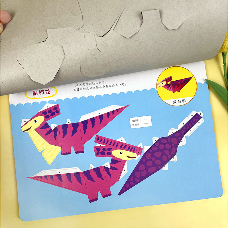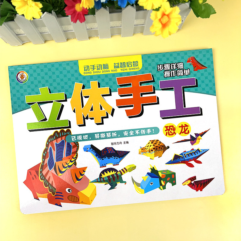 📚 男孩恐龙3d立体折纸书3-6岁儿童diy手工粘贴玩具幼儿园制作材料包