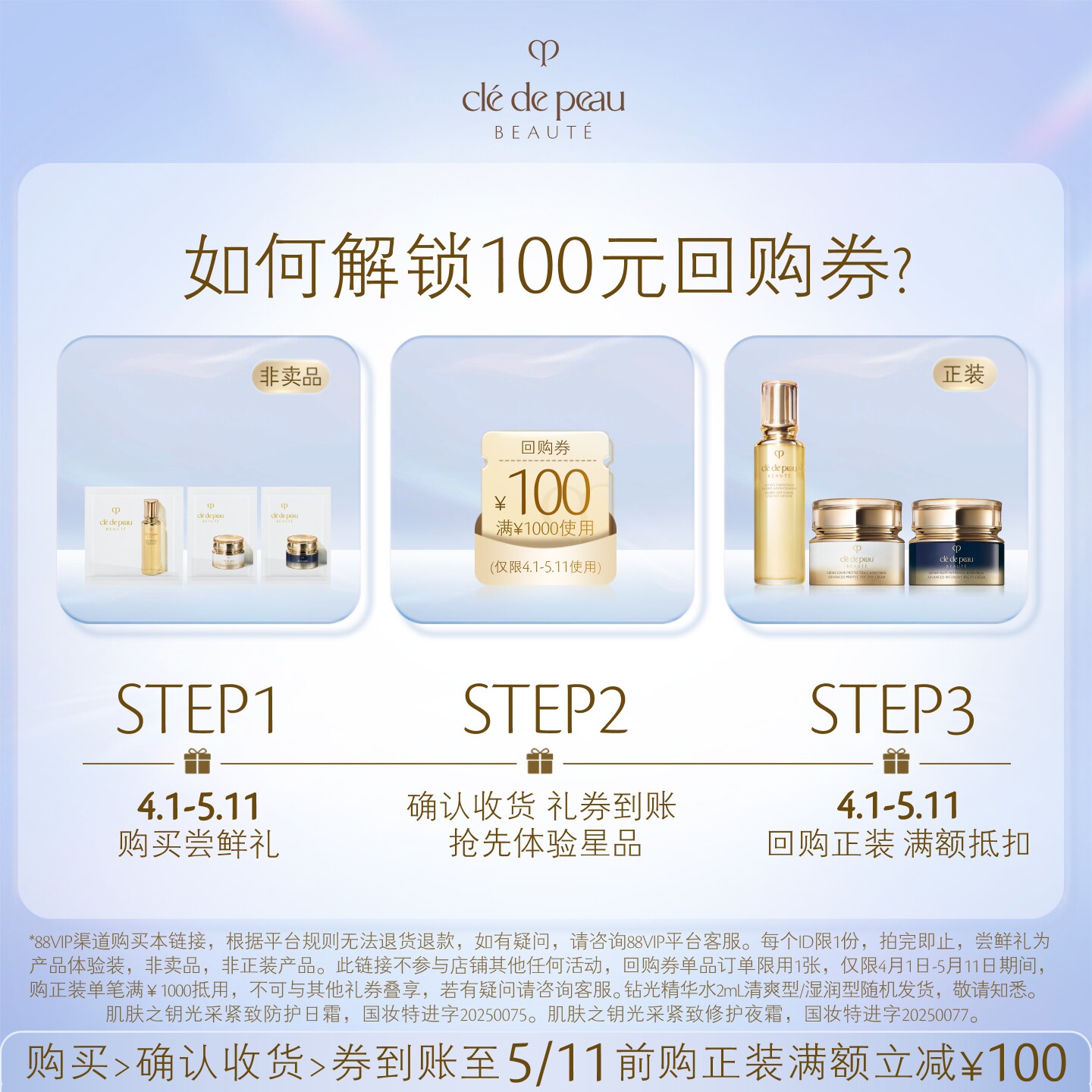 📚 【会员专享】肌肤之钥「钻光奢护三部曲」尝鲜礼内源水光日夜年轻