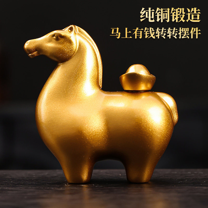 📚 黄铜马上有钱摆件新款马年2026生肖马家用客厅元宝马桌面装饰礼品
