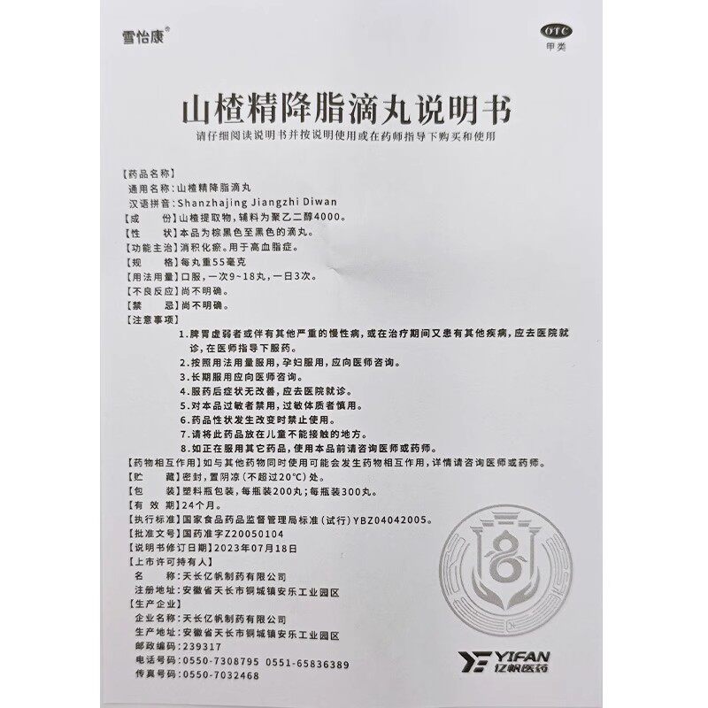 📚 雪怡康 山楂精降脂滴丸300丸药房官方旗舰店正品高血脂症亿帆医药