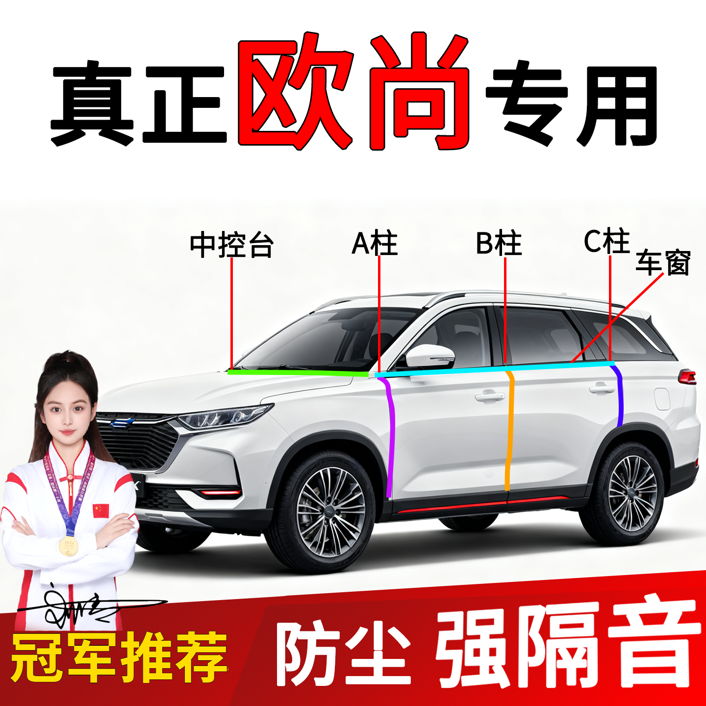 📚 适用于欧尚X5PLUS/X7/Z6车门B柱C柱中控台前挡风玻璃密封条隔音