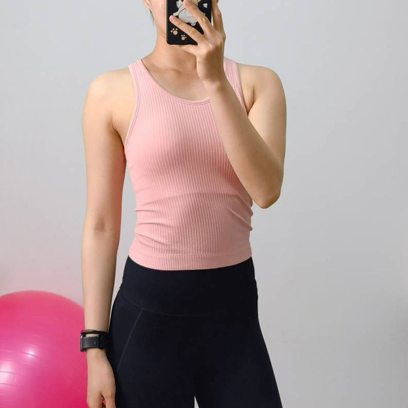 📚 面料柔软包裹性好 EBB短款网红瑜伽背心带胸垫运动健身上衣外穿