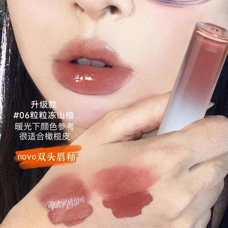 📚 NOVO唇釉口红双头双效唇泥哑光雾面镜面水光一体不易沾杯素颜显白