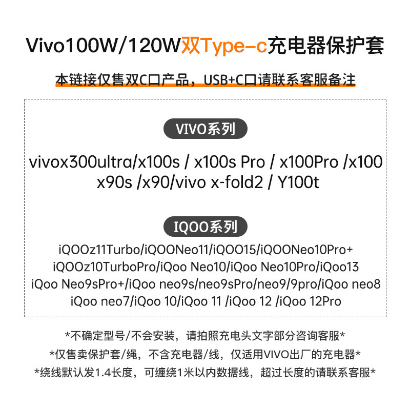 📚 适用100W快充vivox300ultra可爱充电器充电线保护套x100sprox100sx90s手机壳硅胶全包iQOOz11turbo通用缠绕绳