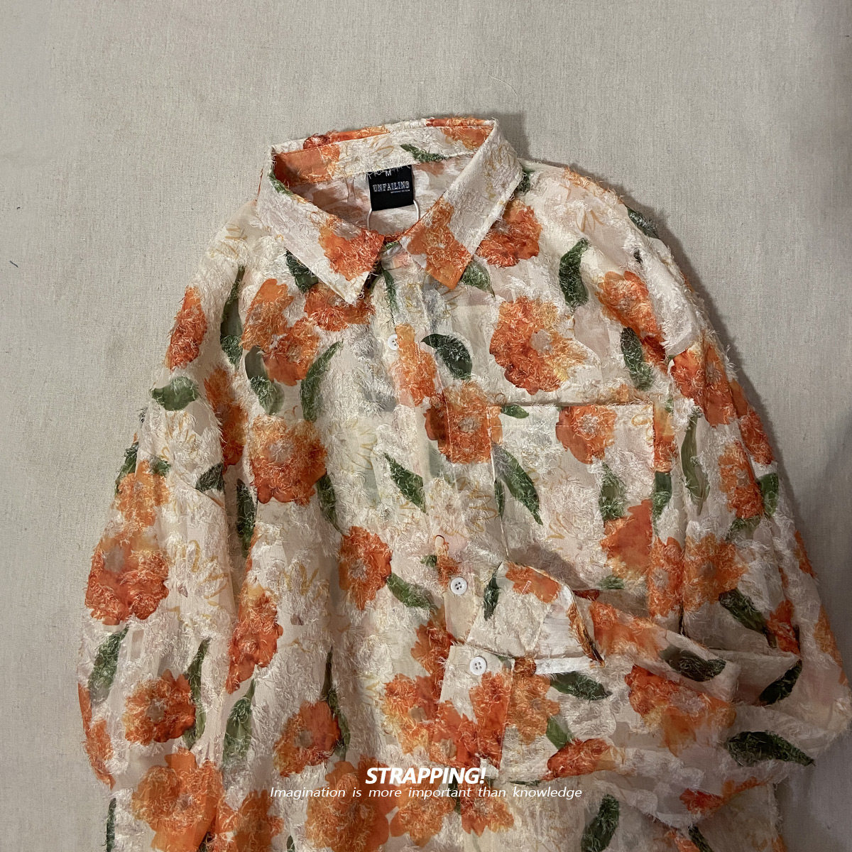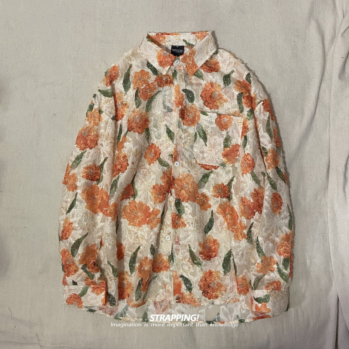 📚 STRAPPING橘红花卉碎花提花勾线长袖花衬衫韩版复古日系男女春秋