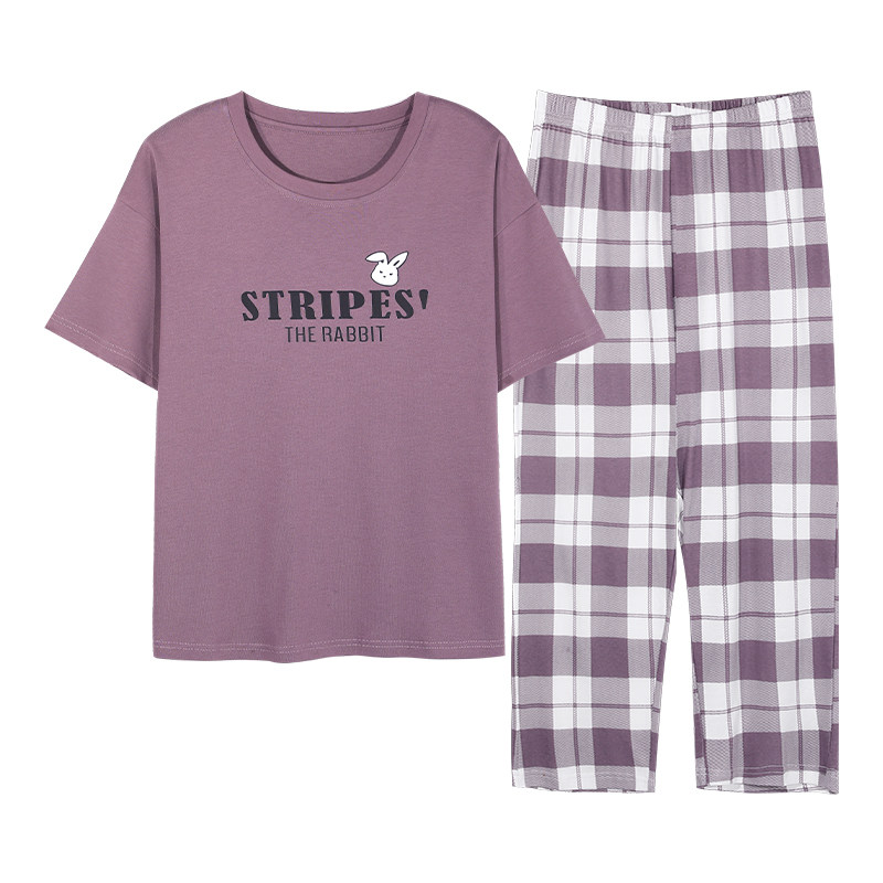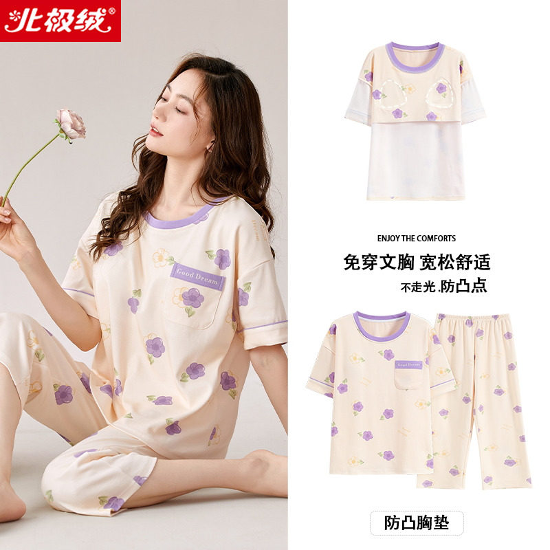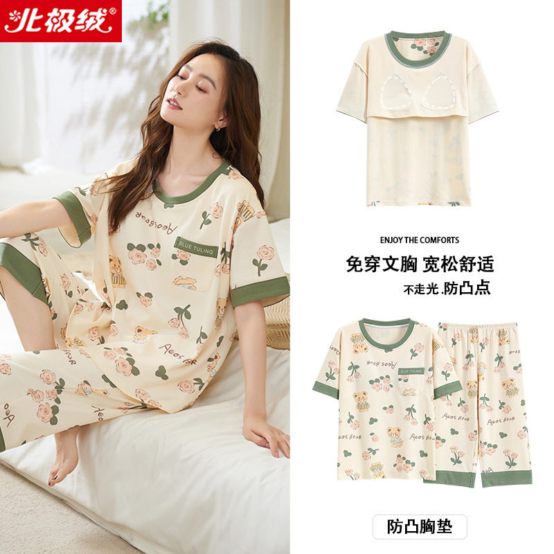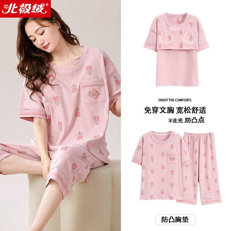📚 2025年自带胸垫睡衣女夏季纯棉短袖七分裤免穿文胸罩家居服两件套