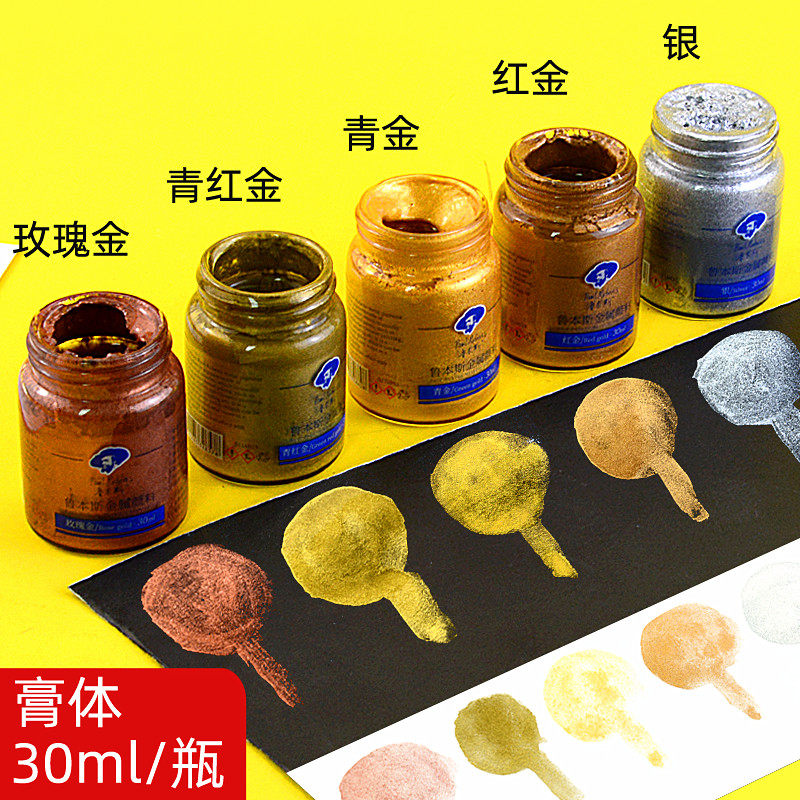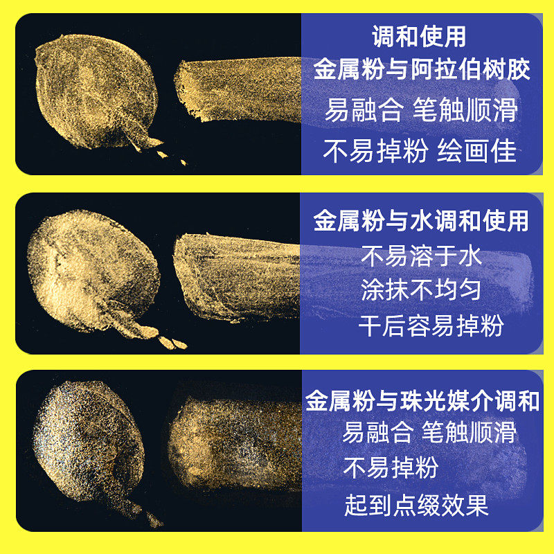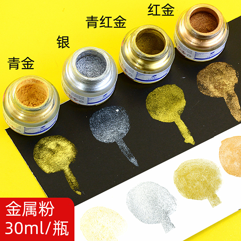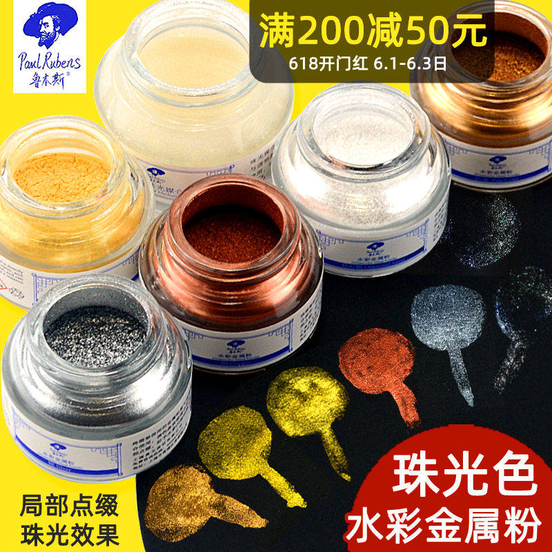 📚 鲁本斯水彩颜料专用金粉珠光色金属色粉金色银色金银粉美术国画固体水粉丙烯画画媒介绘画磷光分层彩粉白墨水