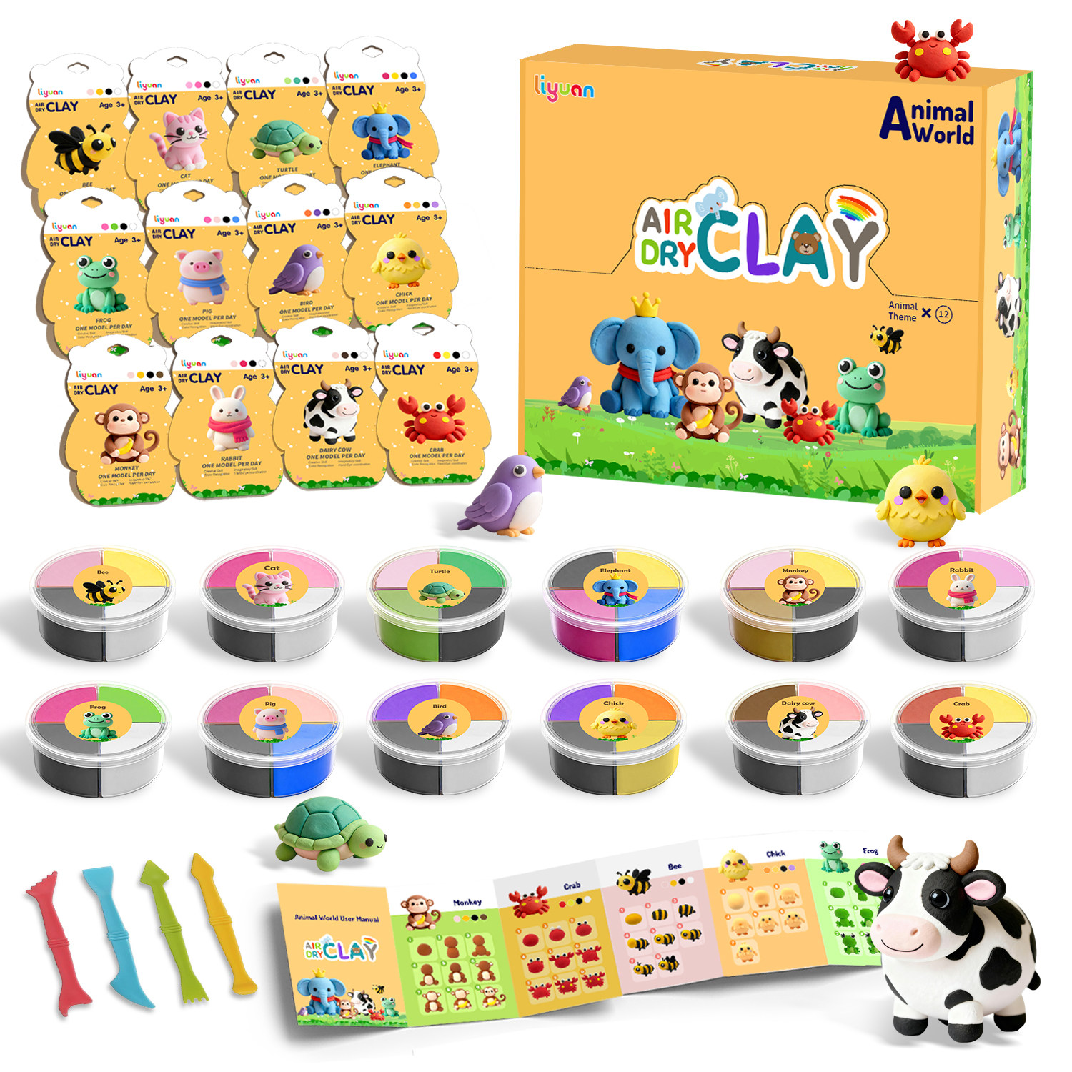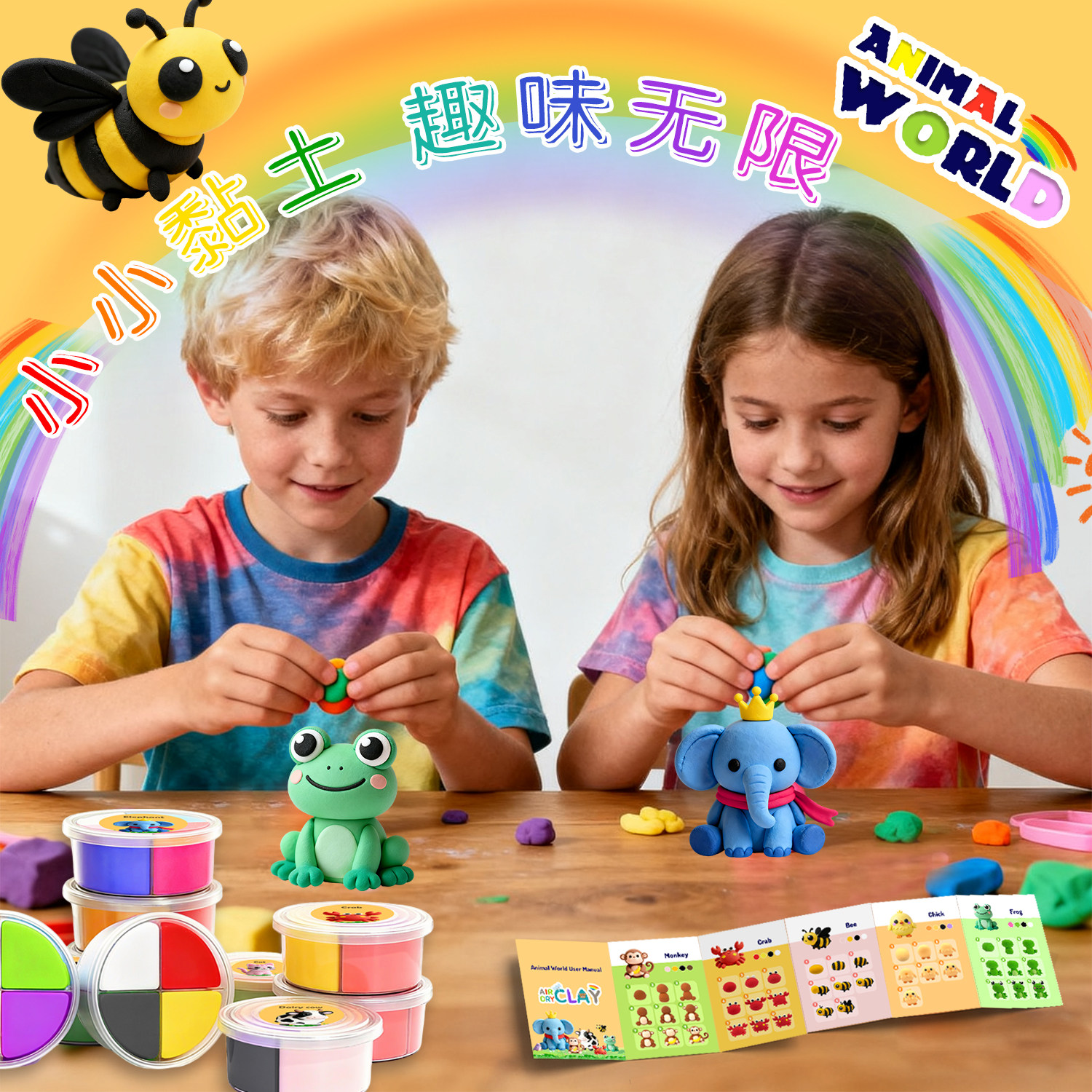 📚 超轻粘土儿童学生幼儿园手工小动物系列DIY彩泥黏土材料工具套装