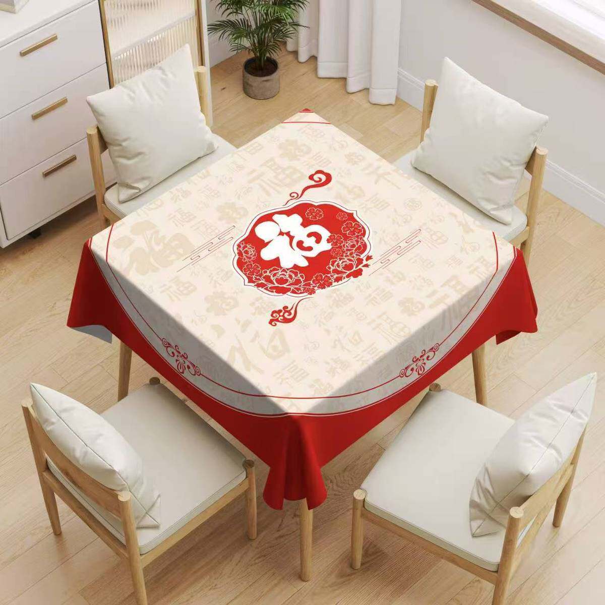 📚 新款正方形桌布折叠圆桌两用防水防油免洗新年过年餐桌麻将福桌布
