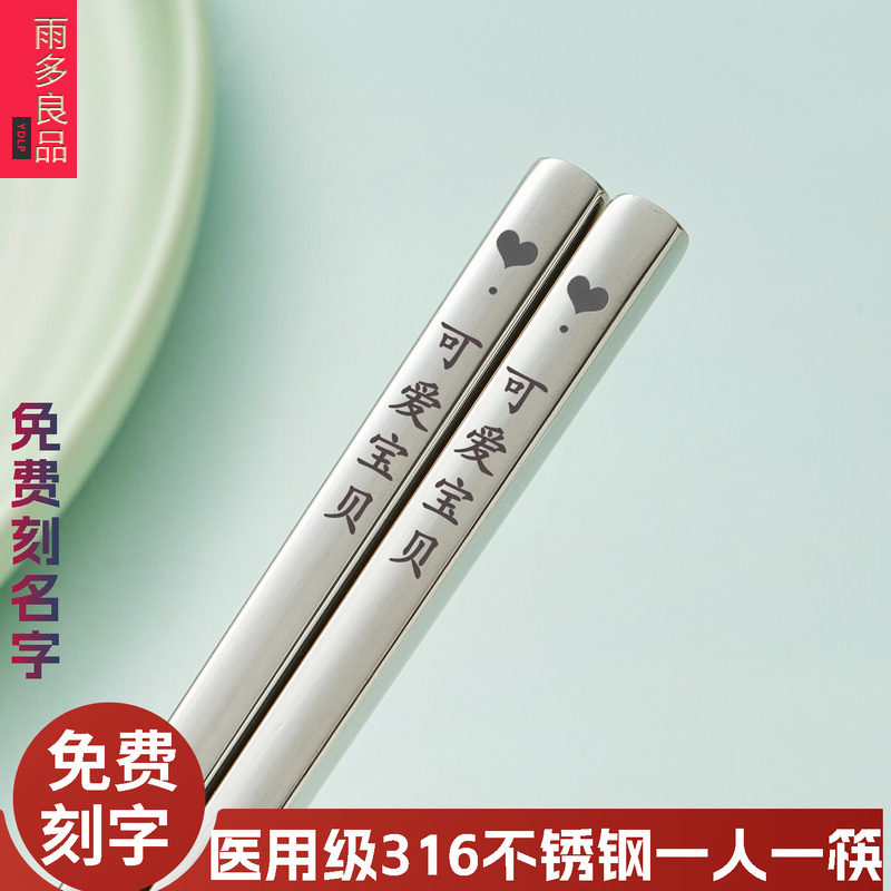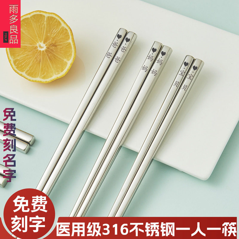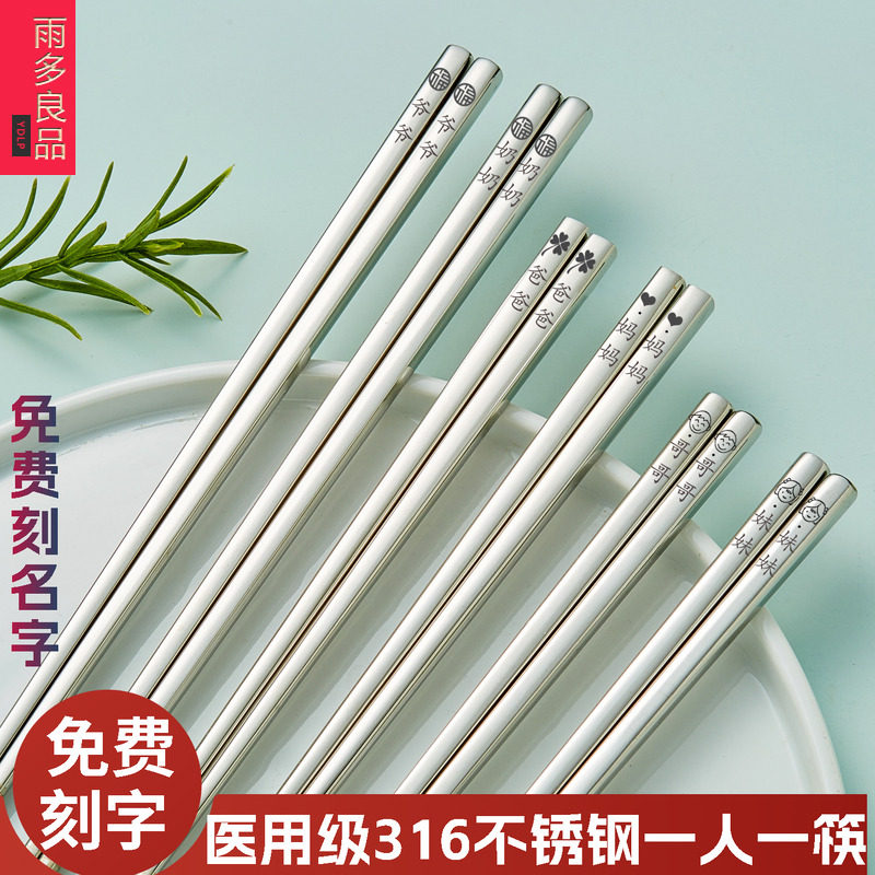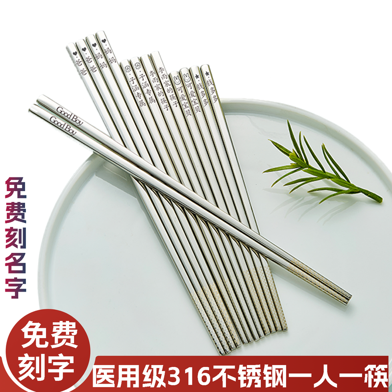 📚 食品级316L不锈钢筷子刻名字定制刻字家用304不锈钢抗菌一人一筷