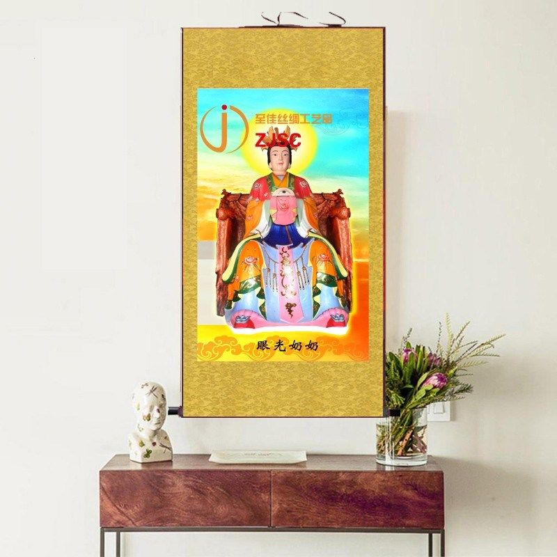 🎨 入手这件丝绸卷轴画无生老母挂画黎山老母泰山奶奶佛堂供奉国画绢布,真的让我爱不释手!😍