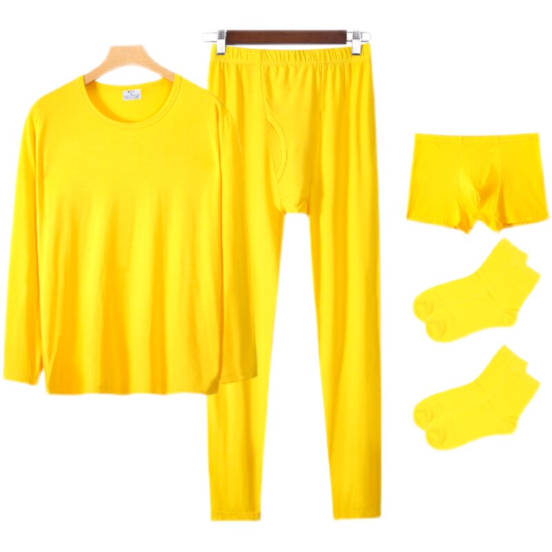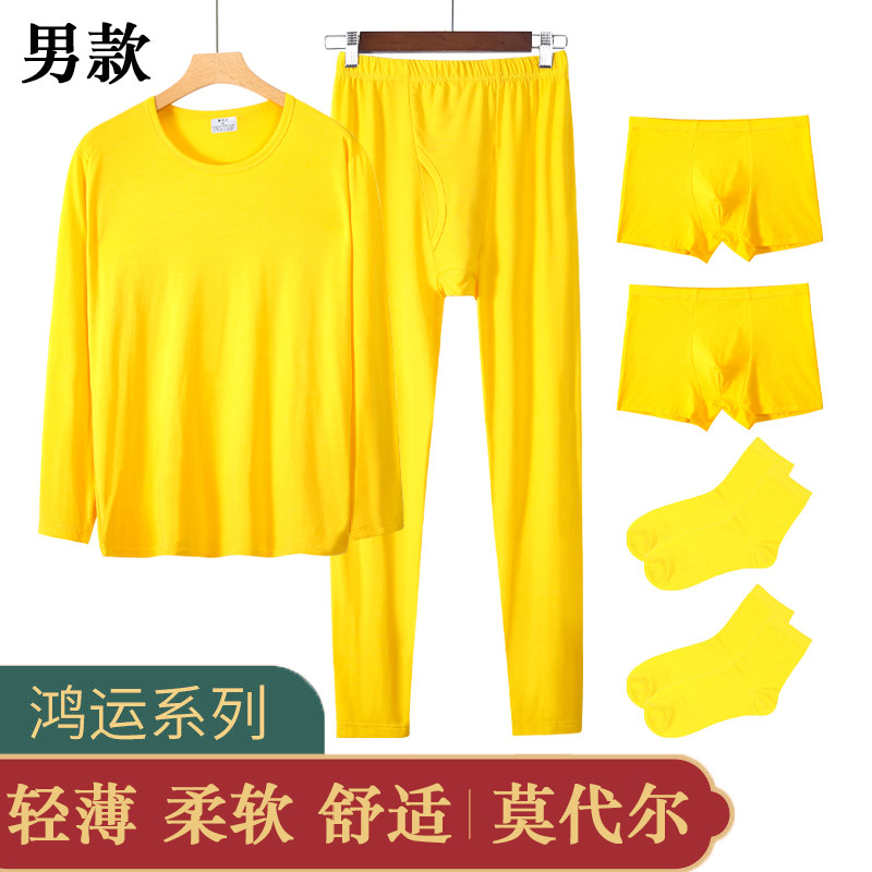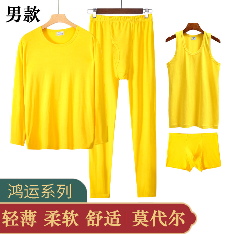 📚 金黄色秋衣秋裤男套装薄款莫代尔黄色内衣闰月本命年鸿运弹力打底