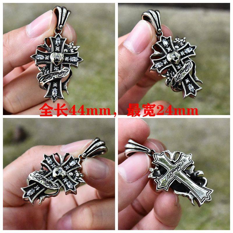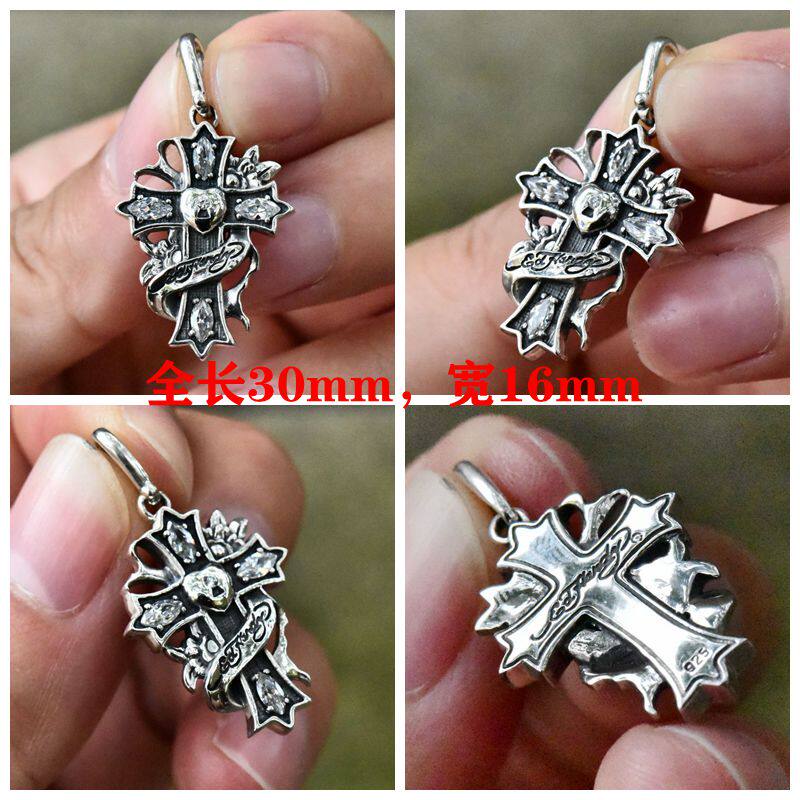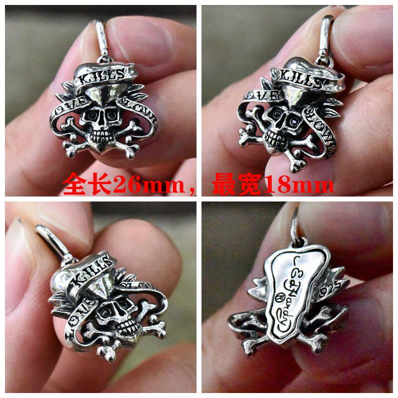 📚 进口男女款925纯银至死不渝的爱与守护骷髅头十字架情侣吊坠挂件