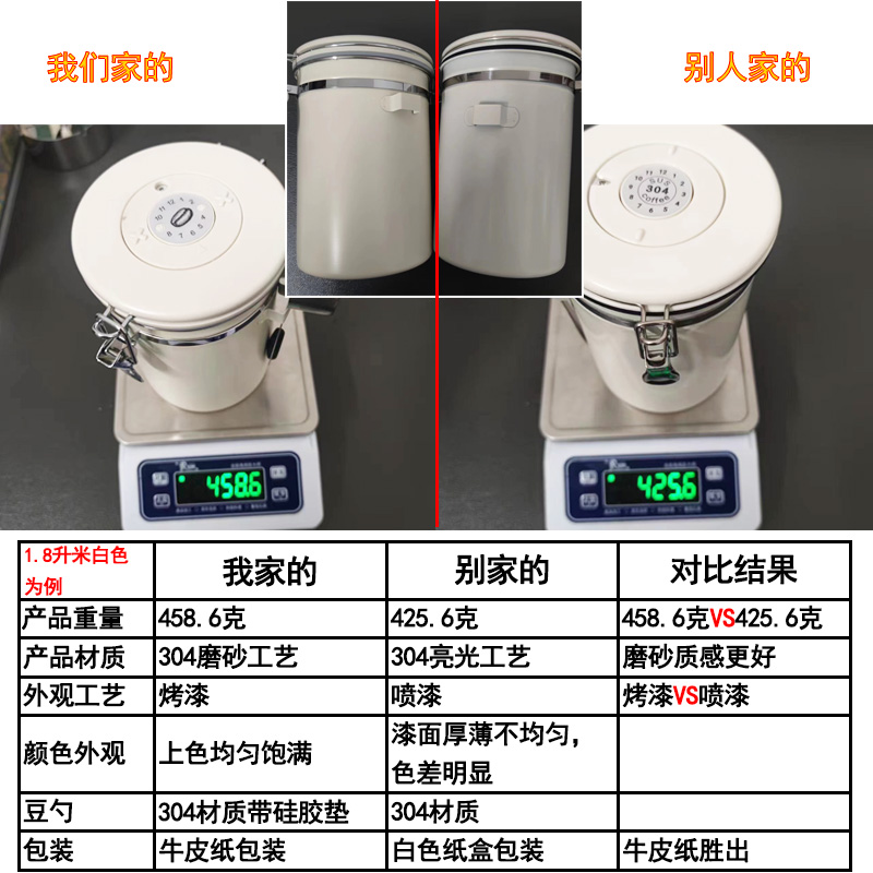 📚 304不锈钢咖啡密封罐带单向排气阀茶叶奶粉糖果干果奶茶店储存罐