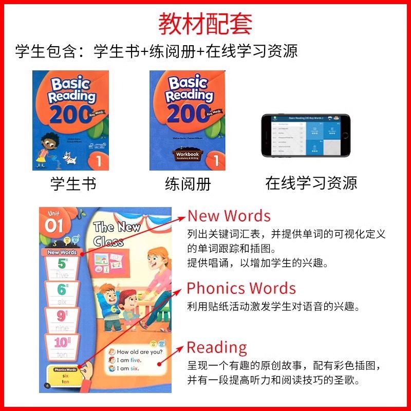 📚 高频词训练+点读版 Compass少儿英语阅读教材200/400/800/1200词 小学英语单词积累课程 加强读写能力 Basic Reading核心词汇