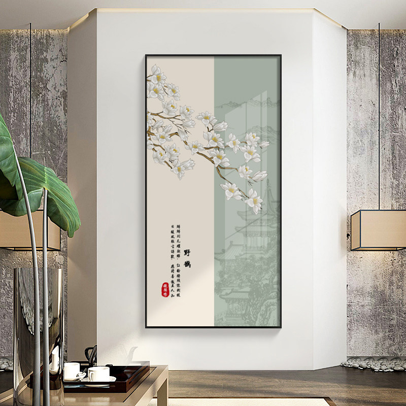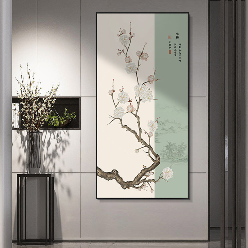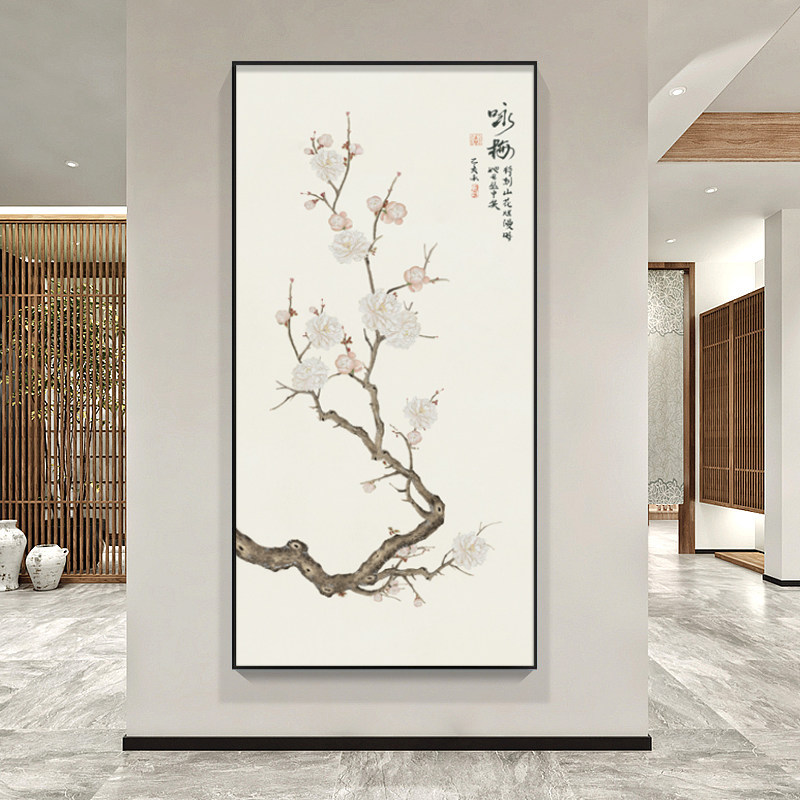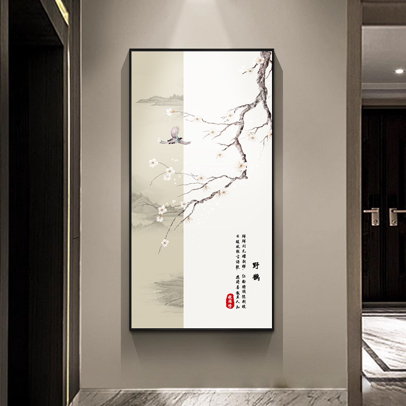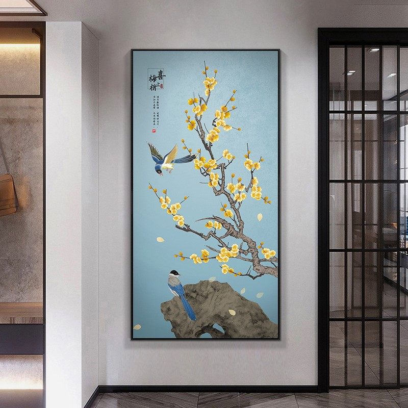 📚 入户玄关花鸟装饰画喜上眉梢新中式茶室禅意挂画客厅走廊尽头壁画