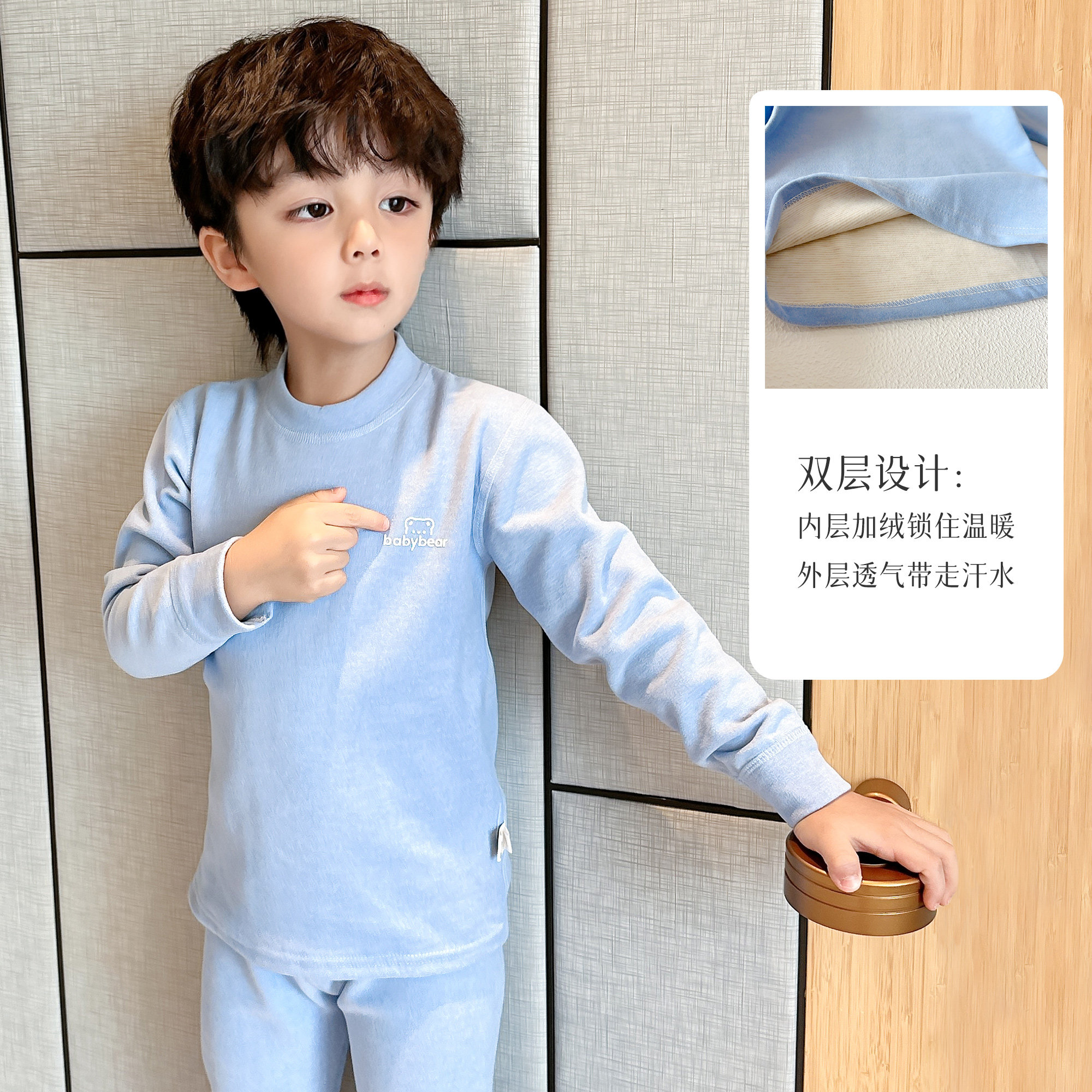 💥超值A类儿童保暖神器!羊毛蚕丝无骨保暖衣套装,学生秋冬必备💰