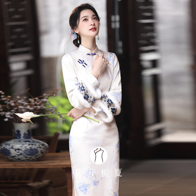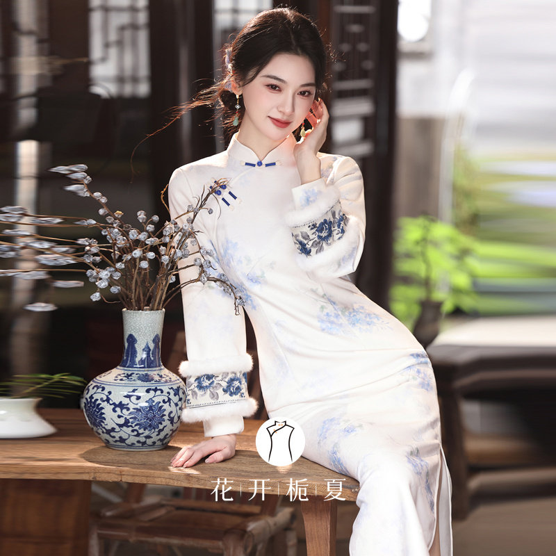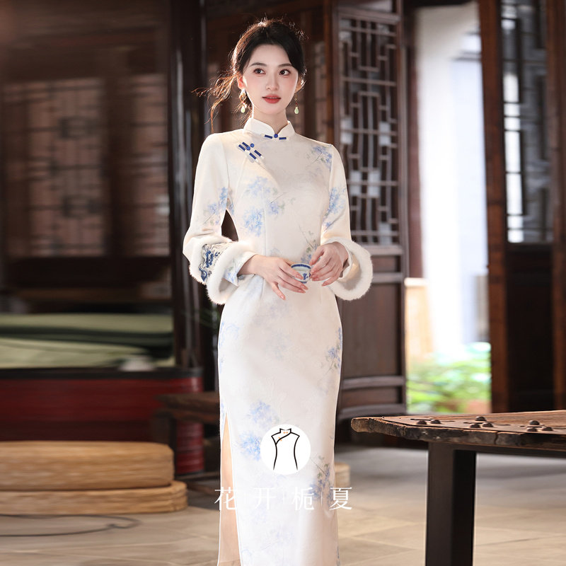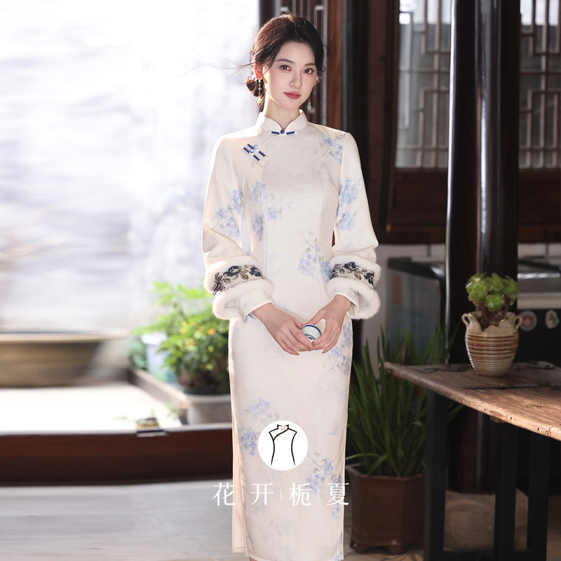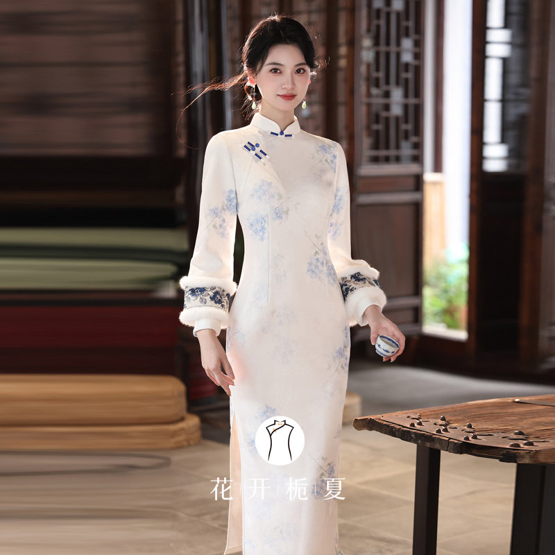 📚 新中式国风素雅白色倒大袖旗袍冬装加绒年轻款少女连衣裙11/14