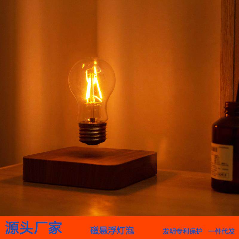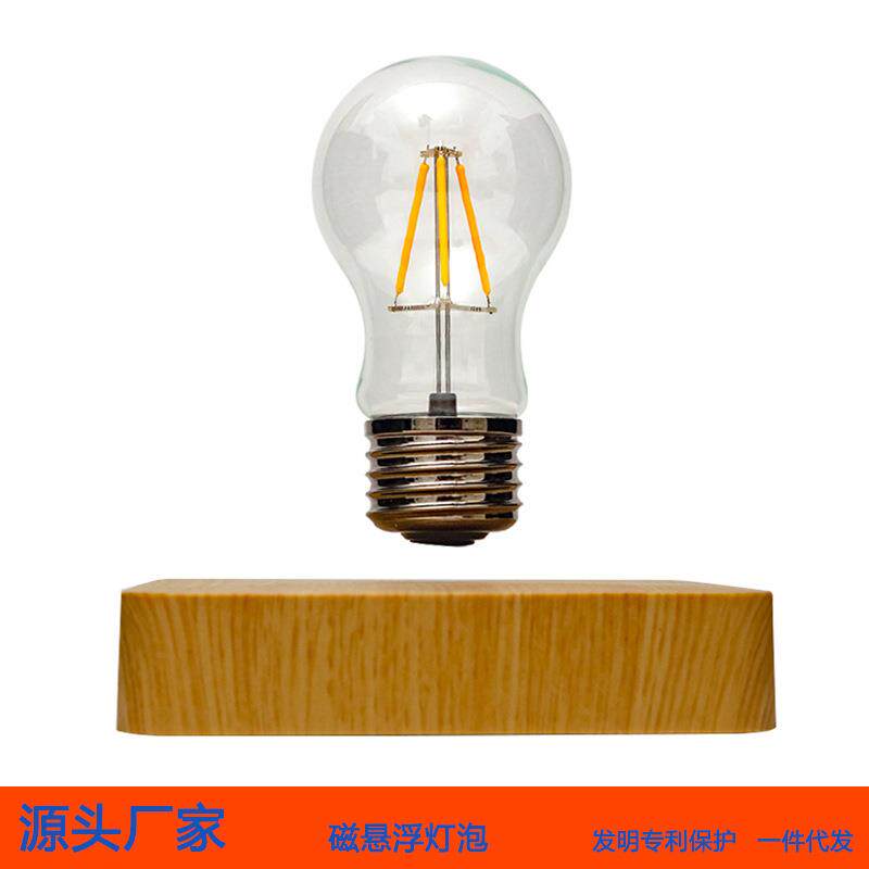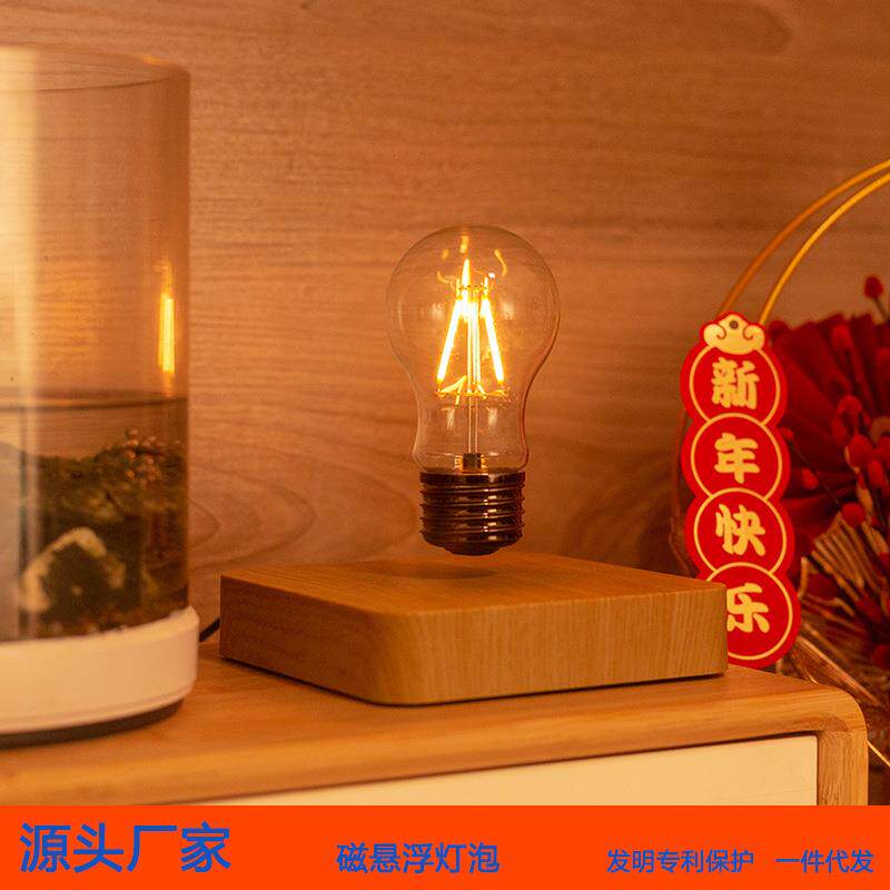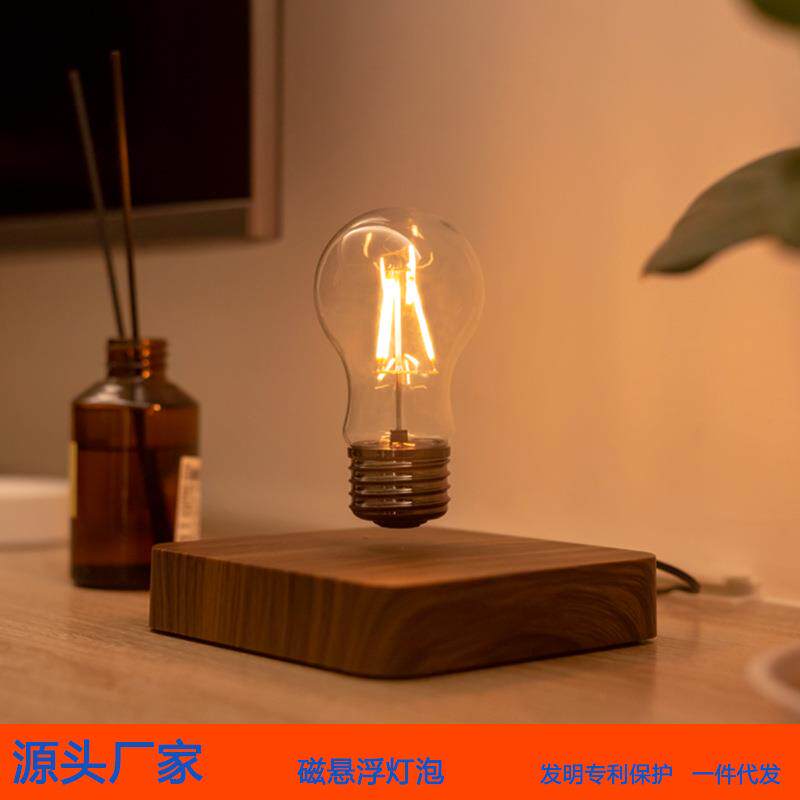 📚 新款直销极简北欧原木风磁悬浮灯泡摆件 自转LED无线发光炫酷科幻