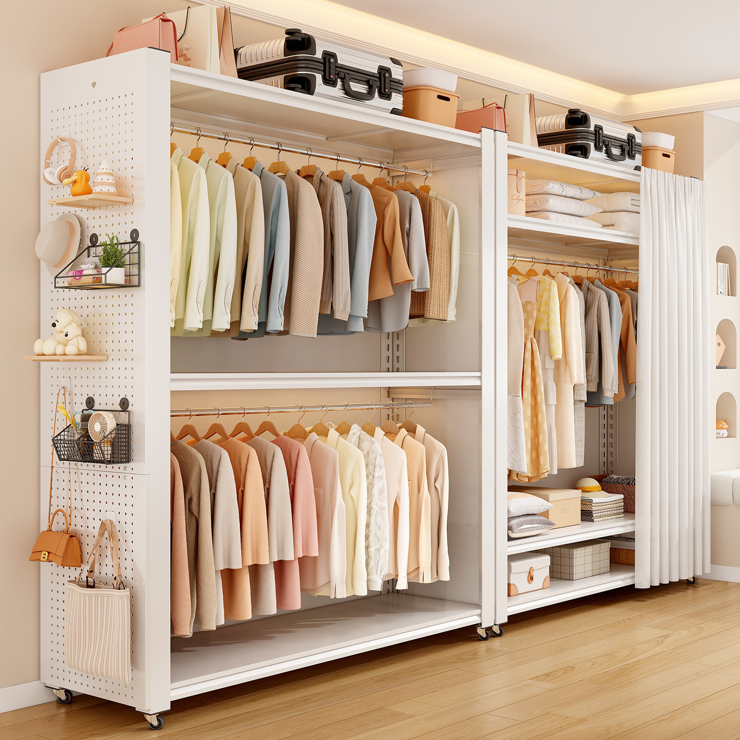 💥🎉种草新宠!简易组装货架式衣柜出租房必备,券后仅365元,儿童洞洞板衣橱来啦!