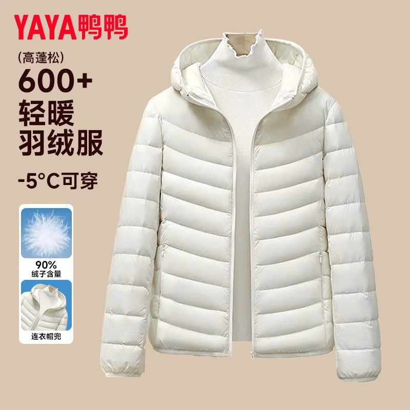 📚 鸭鸭羽绒服女反季冬季短款秋冬轻薄连帽徒步舒适户外便携露营外套