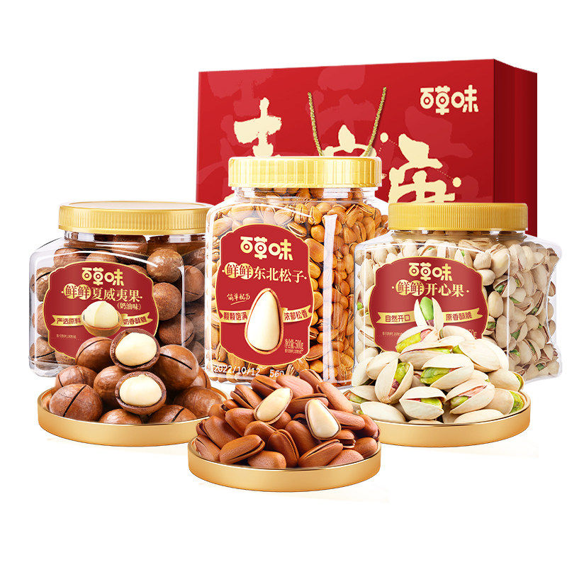 📚 26年货百草味3罐装纯坚果高档礼盒1500g高端健康零食大礼包送礼品