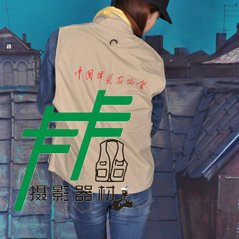 📚 中国摄影家协会纯棉多袋摄影背心摄影马甲中摄协绣字军绿V领中年