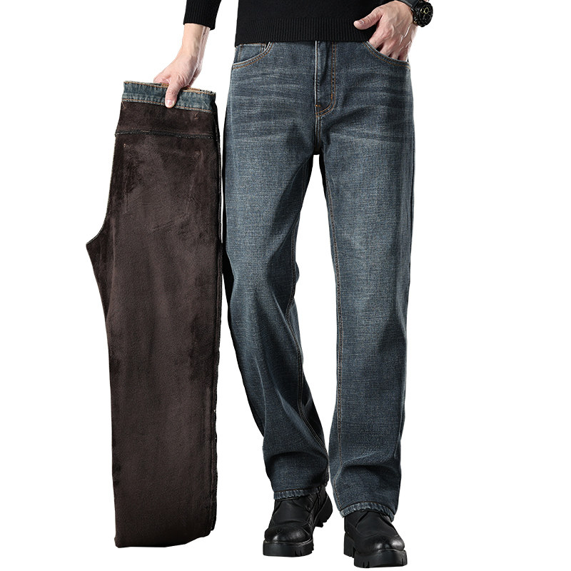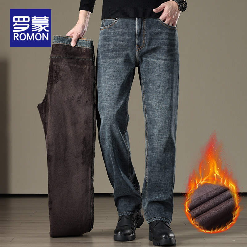📚 罗蒙加绒加厚牛仔裤男2026秋冬季美式潮牌水洗宽松直筒休闲长裤子