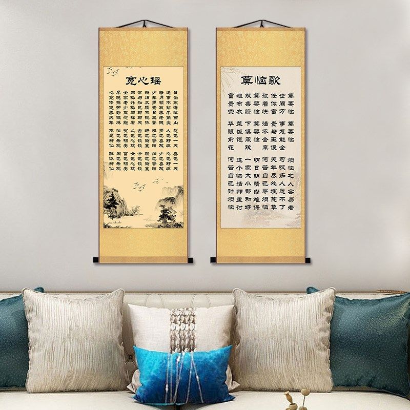📚 宽心谣挂画办公室书房不气歌莫脑歌孝顺决心平气和装饰画竖版卷轴
