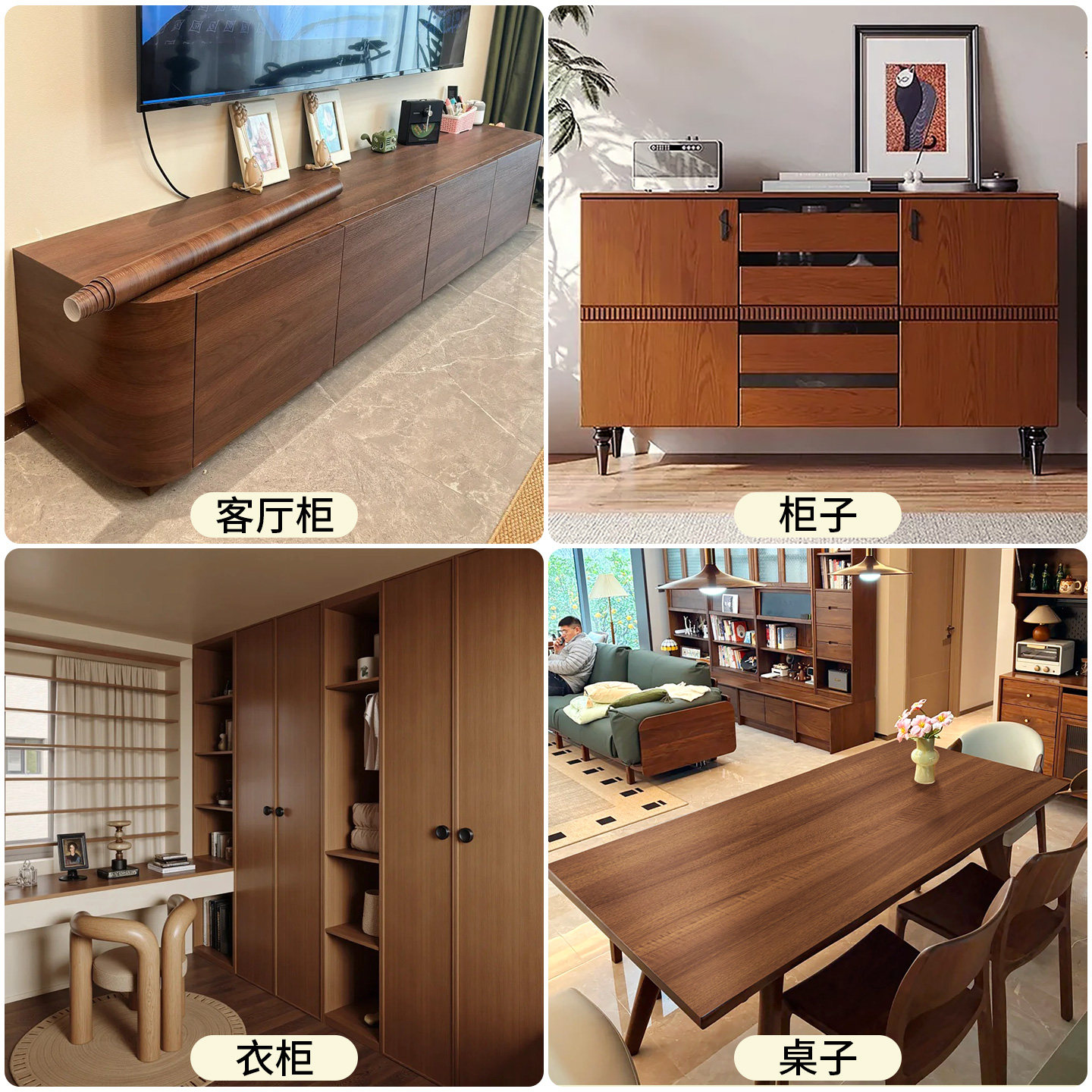 📚 黑胡桃木色贴纸中古风木纹仿木家具翻新柜子柜门衣柜餐边柜高级感
