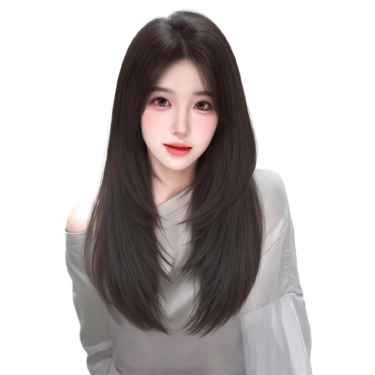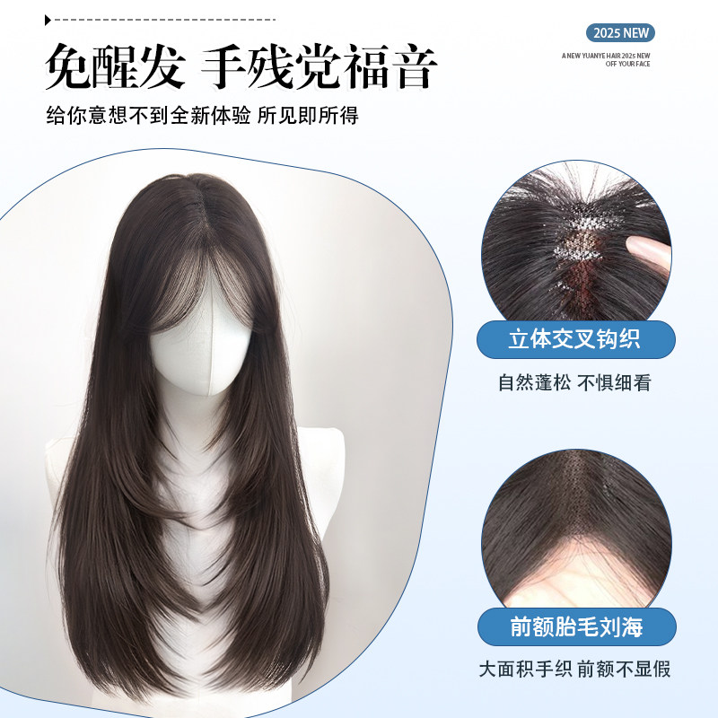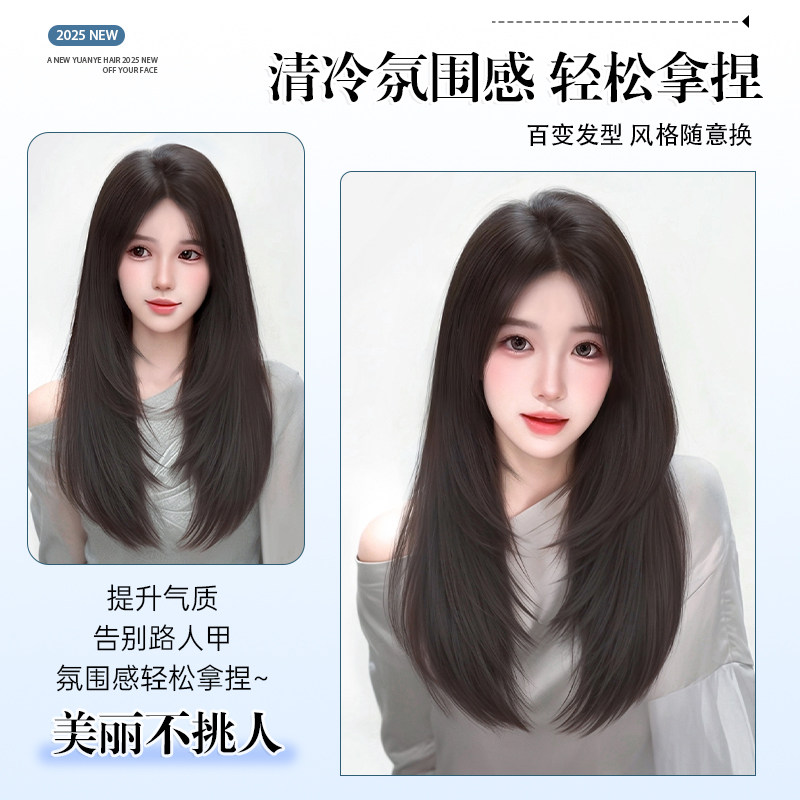 📚 不用戴发网的假发片女高层次中分补发片增发遮白蓬松高颅顶全头套