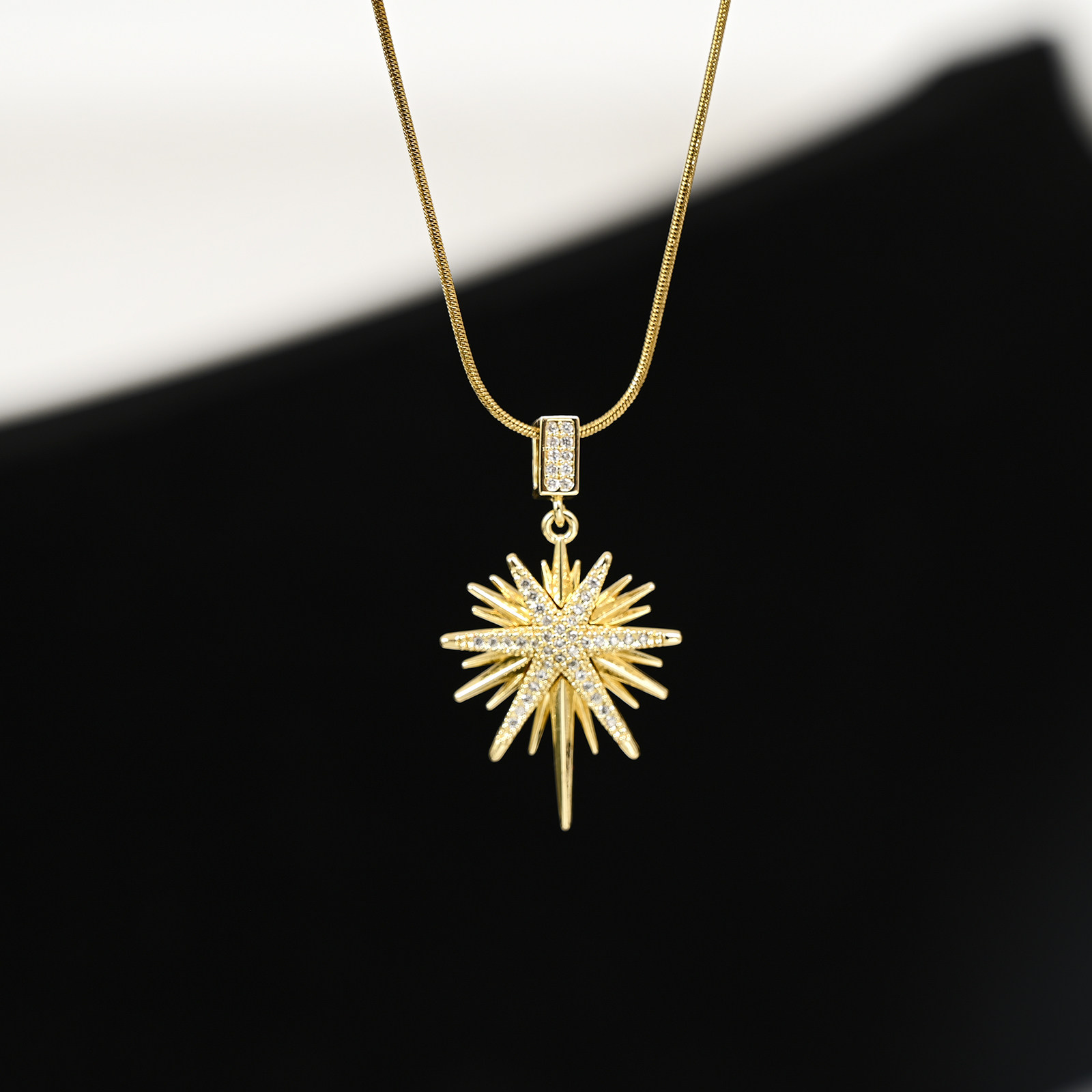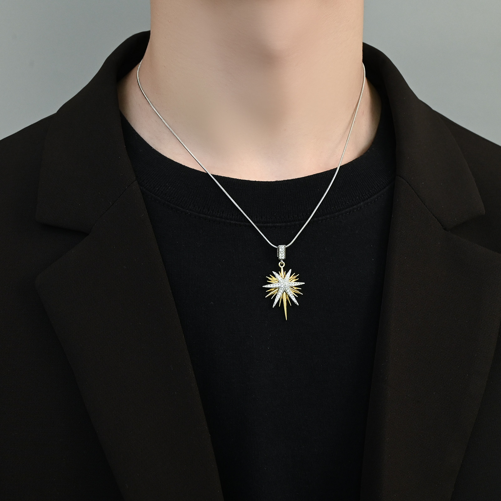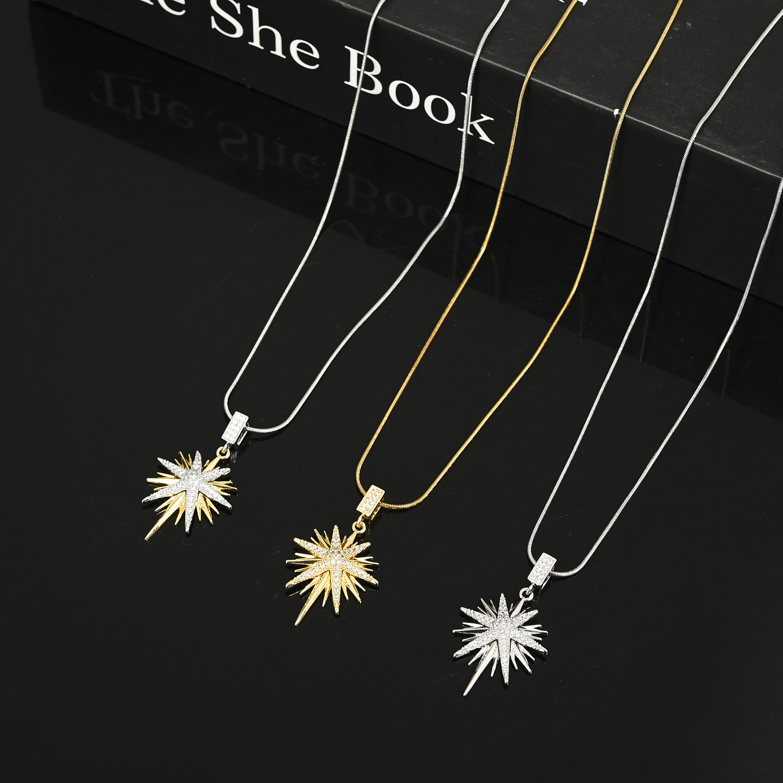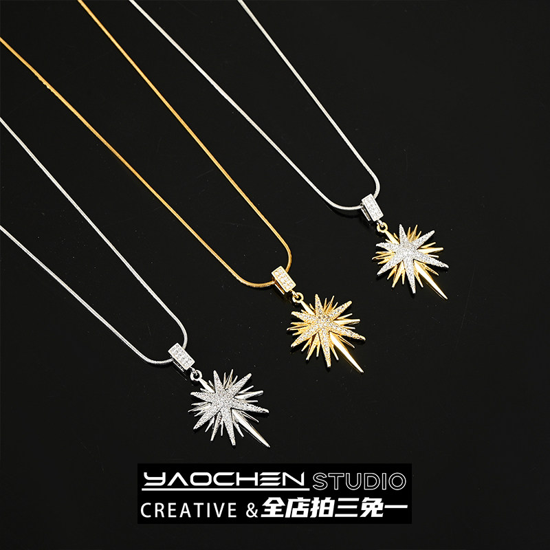 📚 Vintage古着 星芒镶钻吊坠钛钢项链男时尚潮流毛衣链女锁骨链饰品