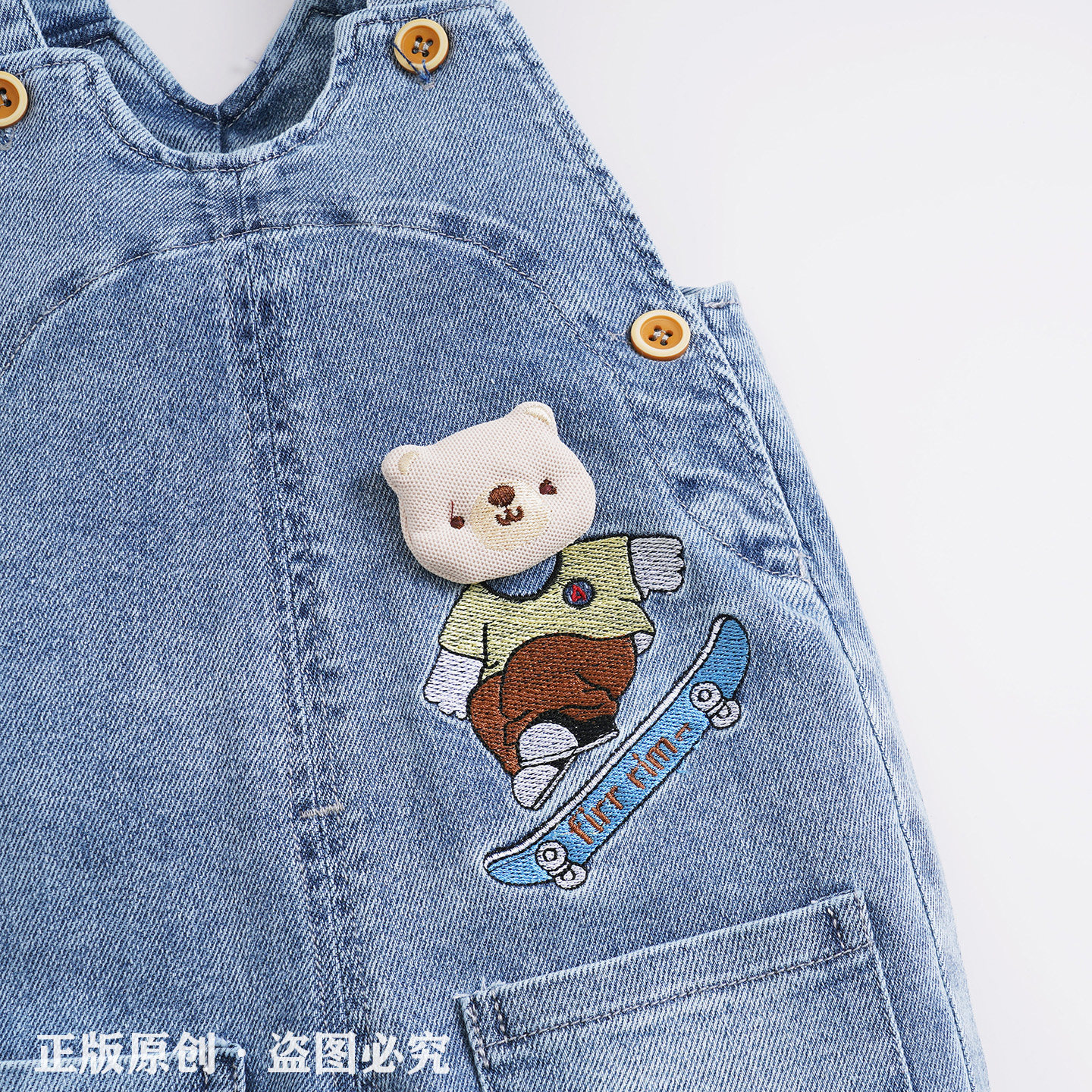 📚 宝宝水洗牛仔背带裤婴儿春秋外出开裆裤男童女童婴幼儿童炸街裤子