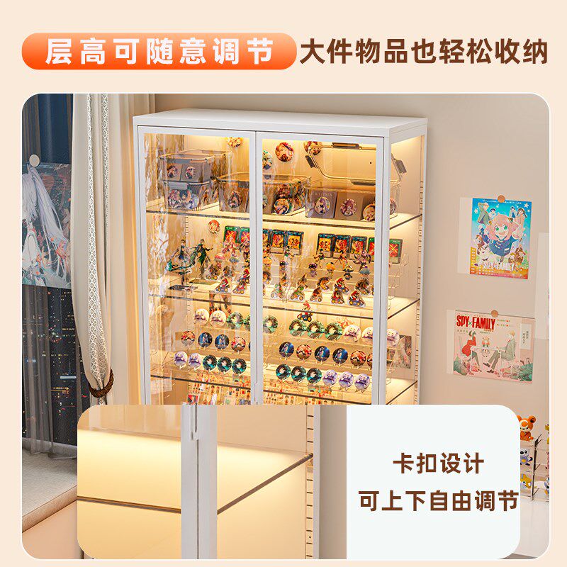 📚 展示柜痛柜带灯透明谷子钢制收纳陈列柜客厅R防尘铁皮柜玻璃柜