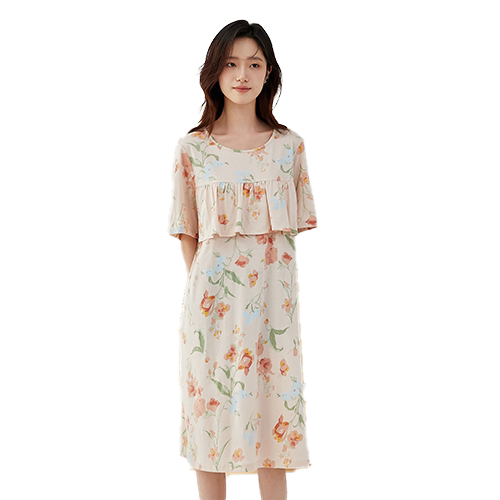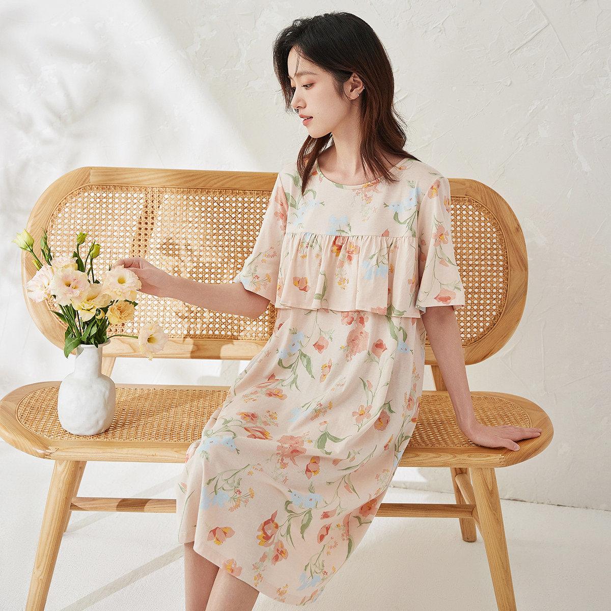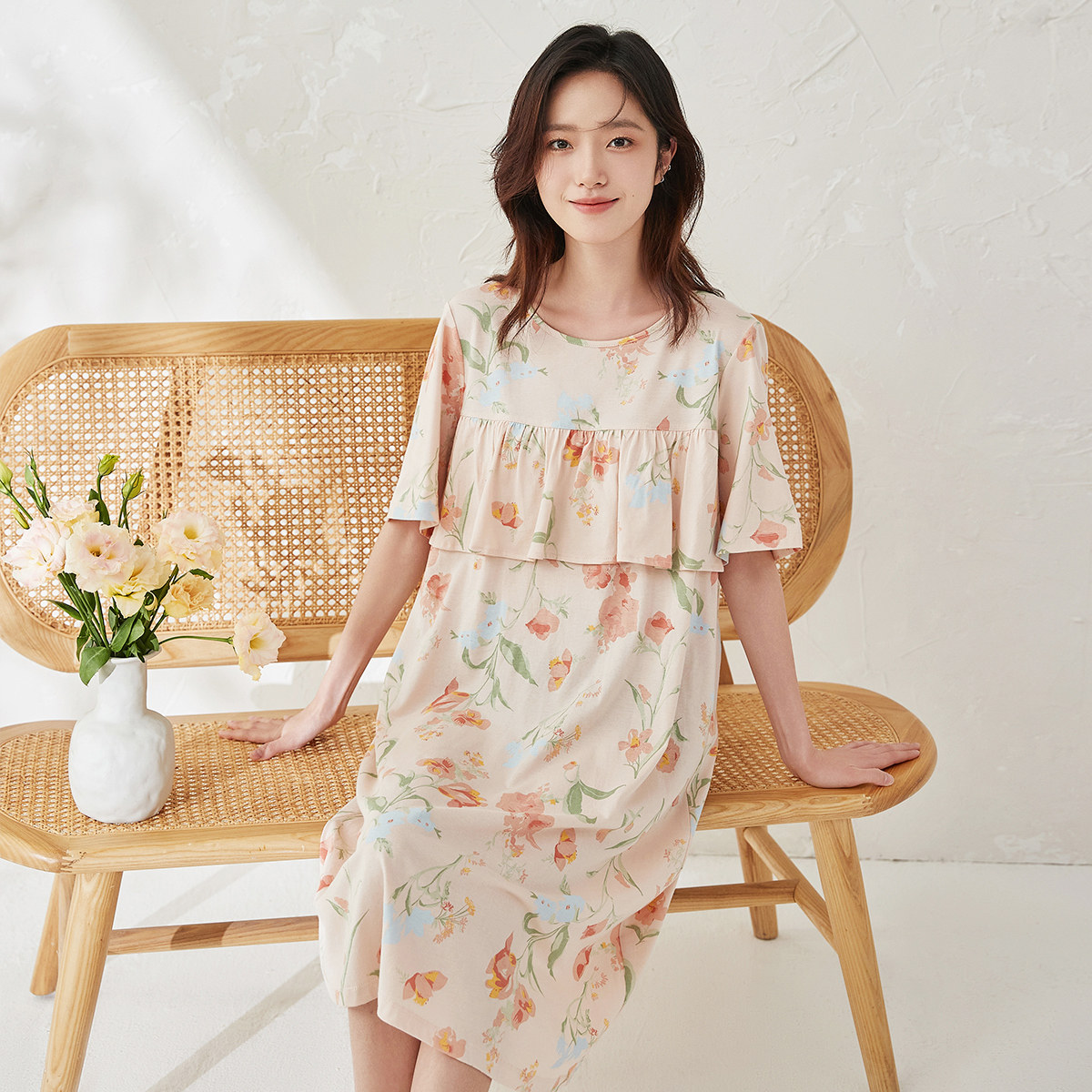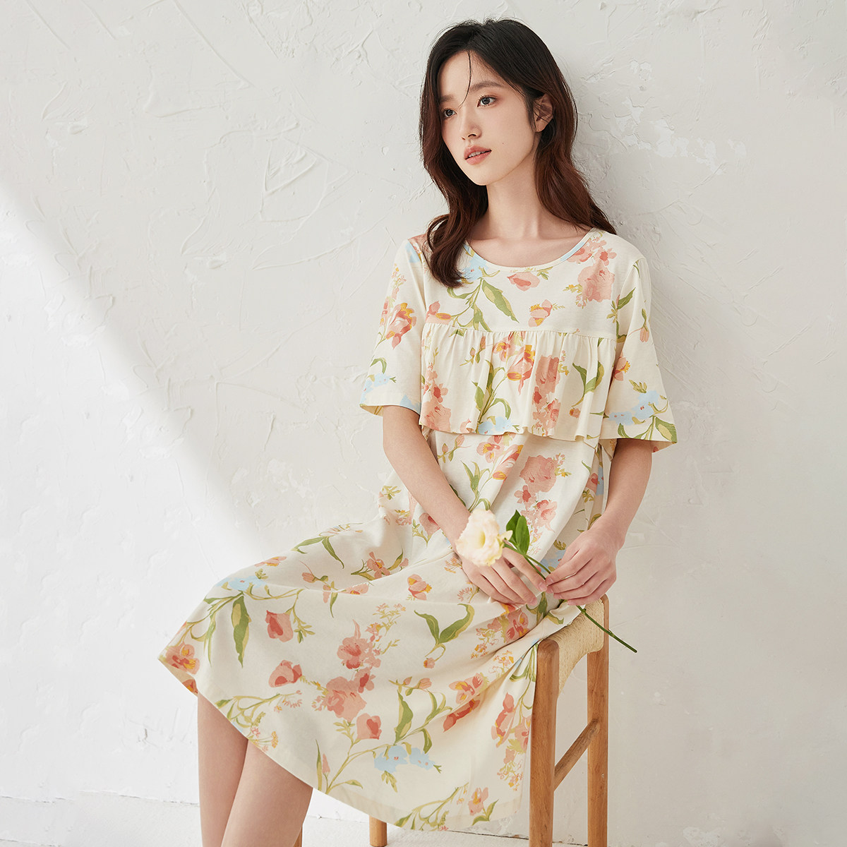 📚 顶瓜瓜纯棉防凸点印花睡裙女春新顶呱呱微A版型短袖可外穿中长裙