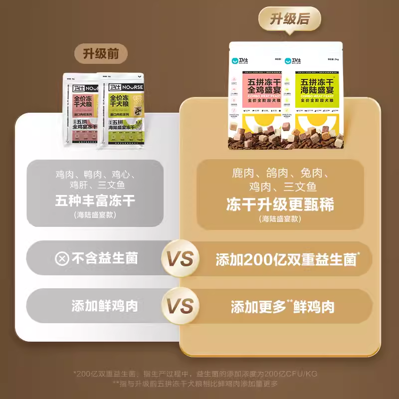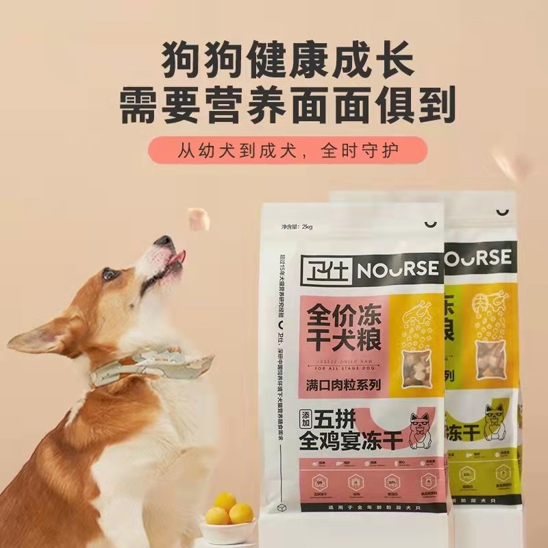 📚 卫仕五拼冻干狗粮通用型犬粮成犬幼犬全阶段2kg大小型犬去泪痕4斤