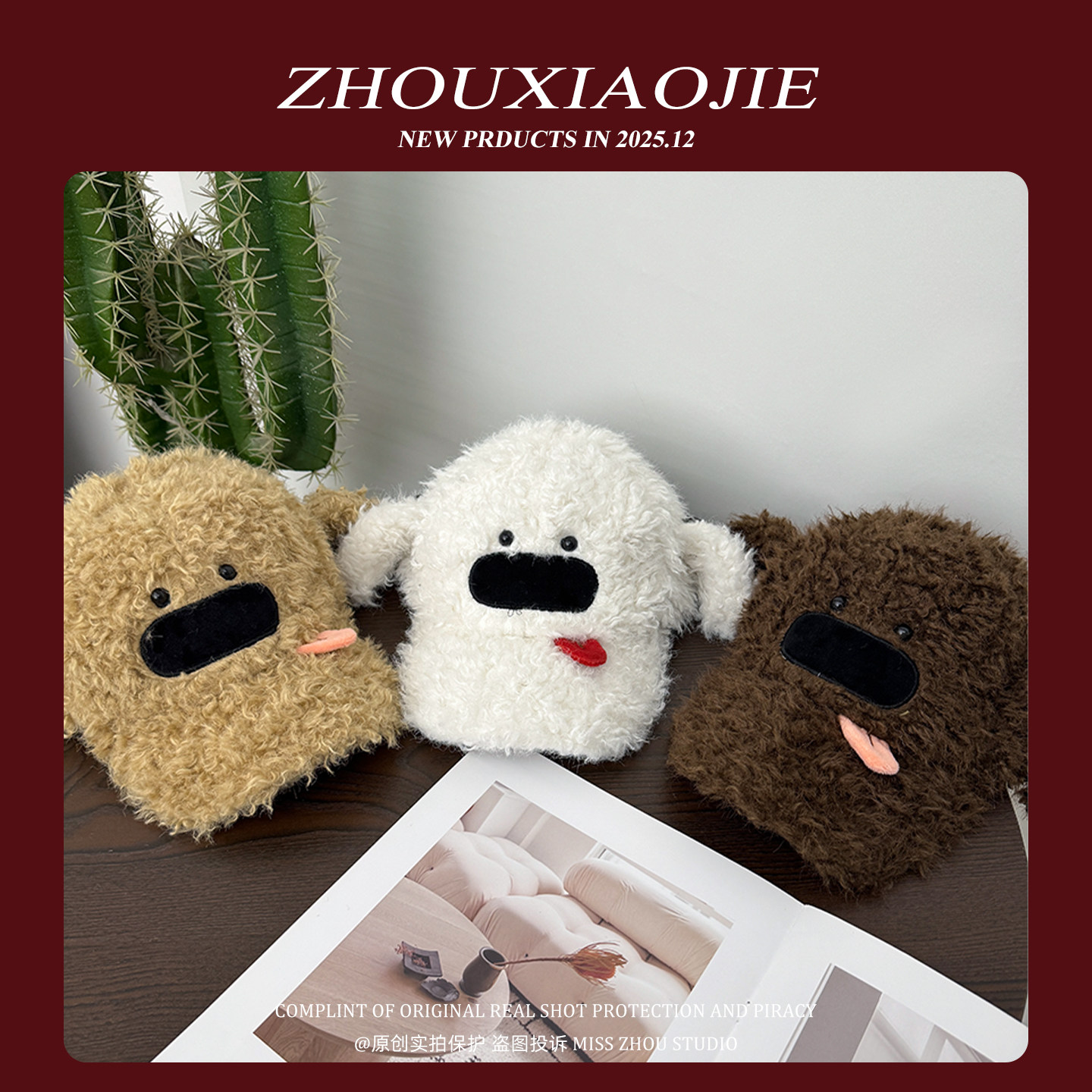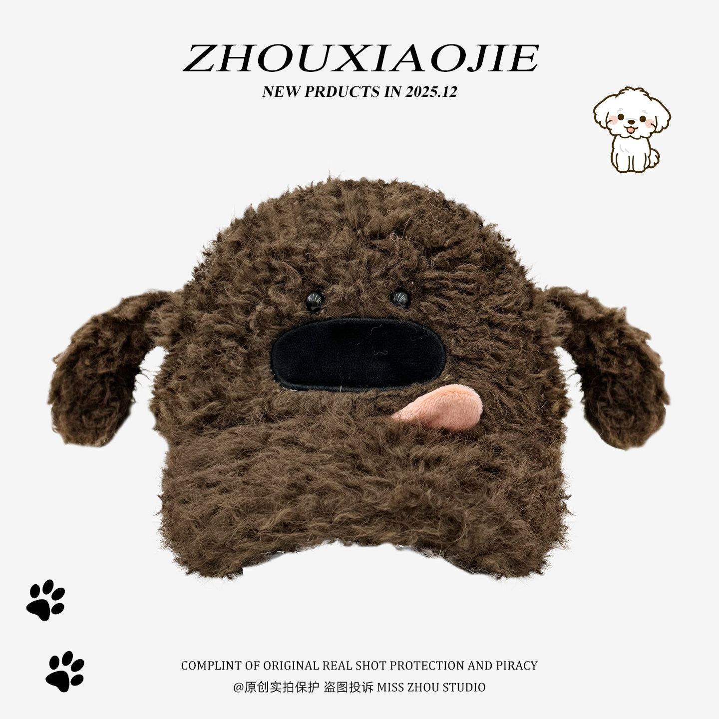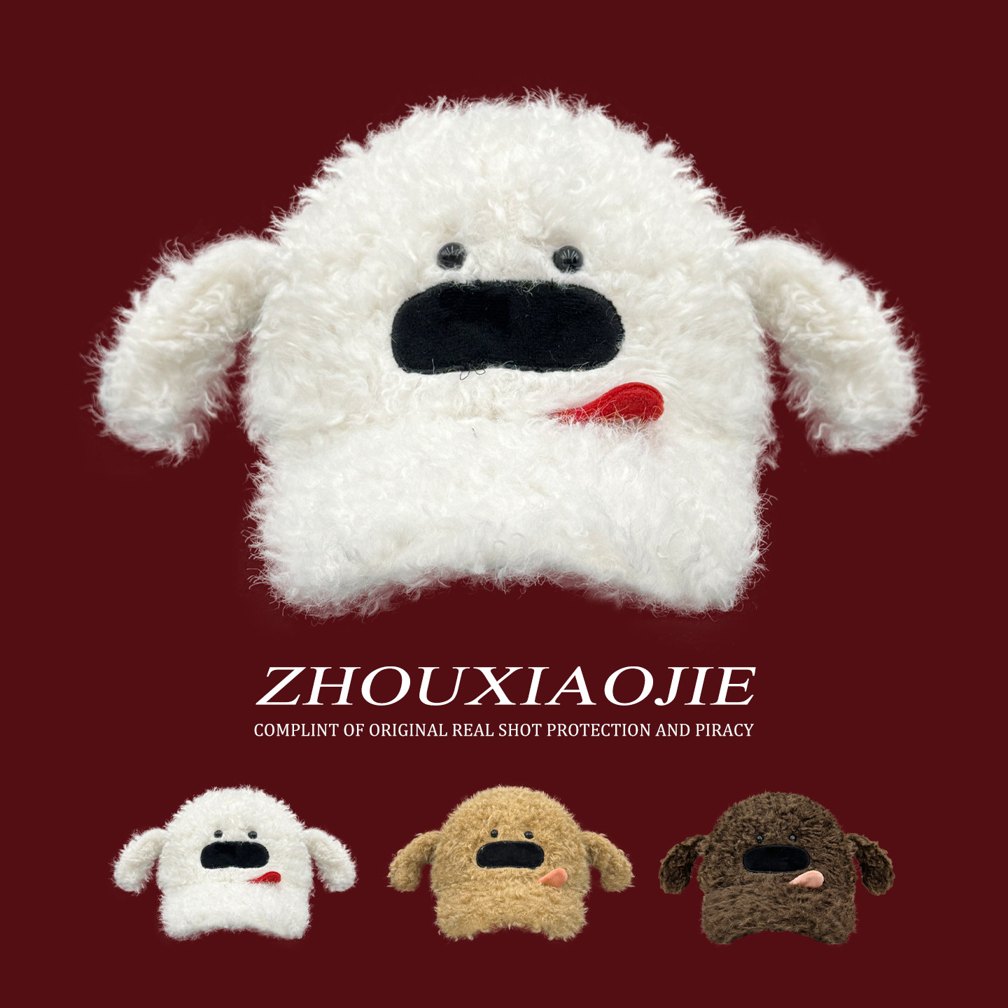 📚 可爱吐舌头小狗毛绒鸭舌帽男女秋冬季加厚保暖百搭显脸小棒球帽子