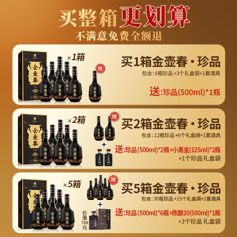 📚 【贵州平坝】金壶春珍品酱香型53度500ml茅源菌种纯粮白酒礼盒装