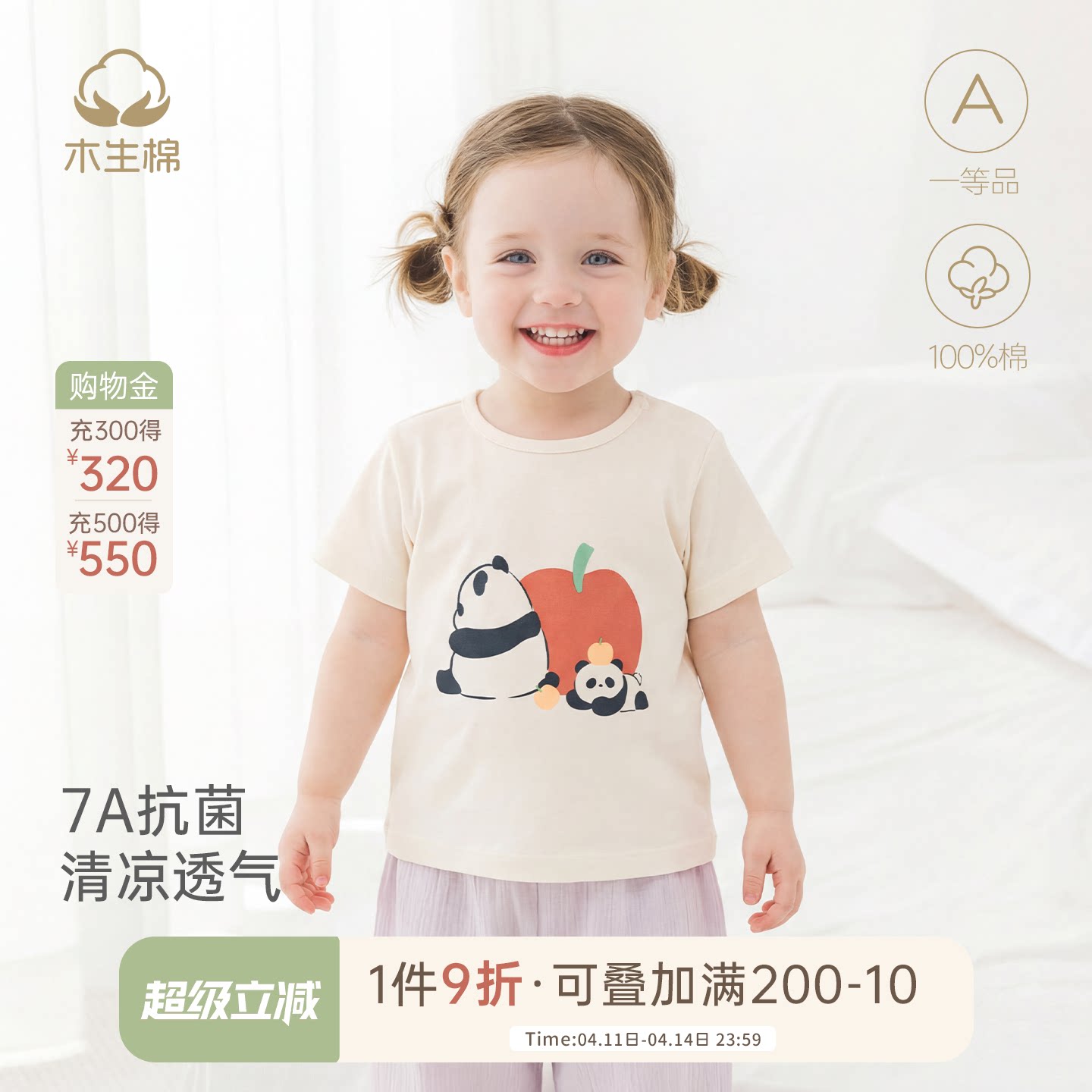 📚 木生棉 宝宝短袖T恤夏季薄款婴儿纯棉可爱上衣小童外出7A抗菌夏装