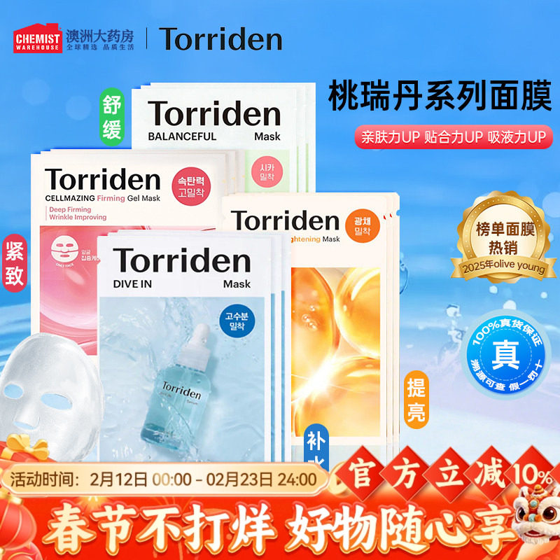 📚 Torriden桃瑞丹玻尿酸补水贴片面膜积雪草修护胶原蛋白提亮紧致