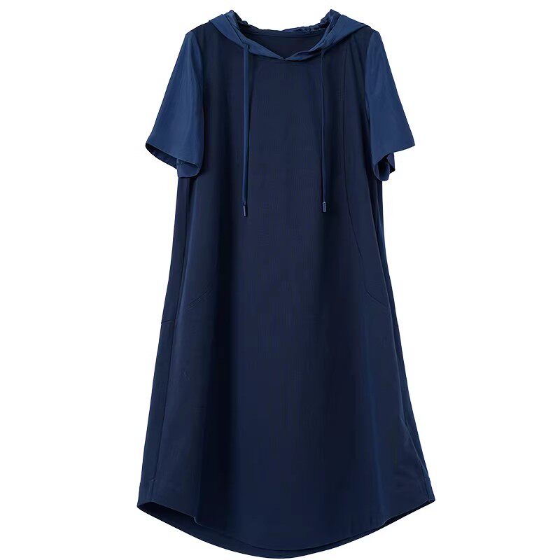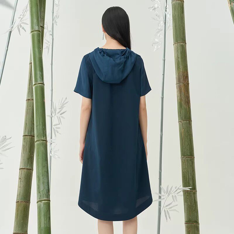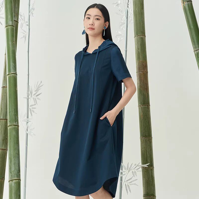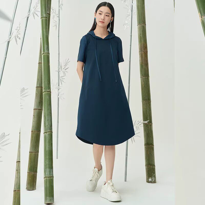 📚 Distin Kidny/迪凯夏季棉质舒适连帽女士短袖文艺休闲中长连衣裙