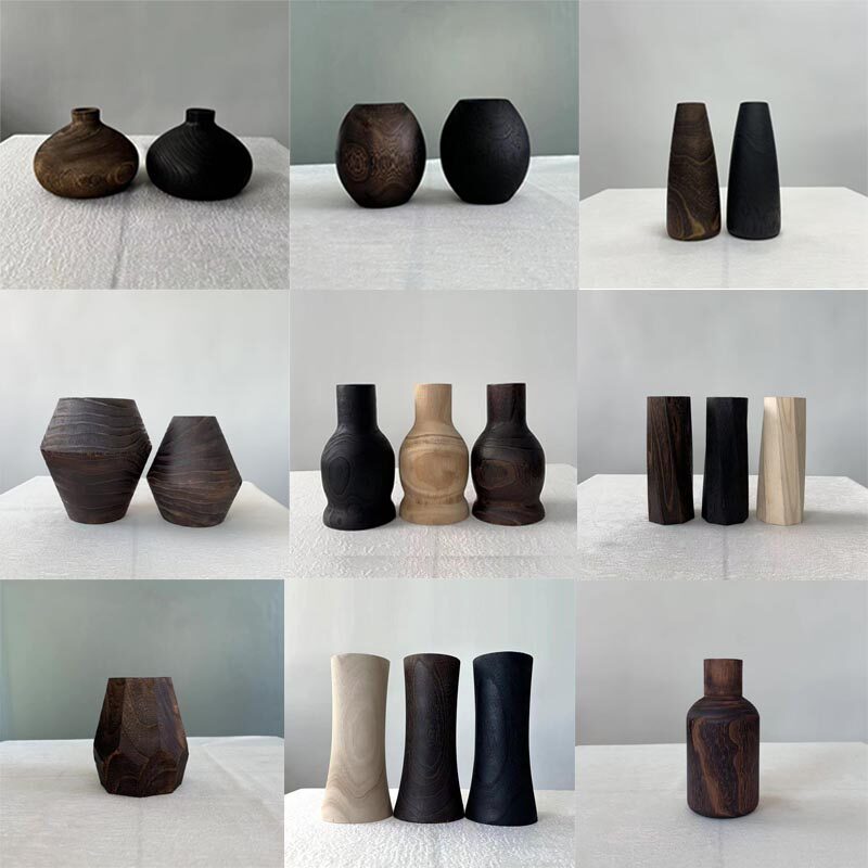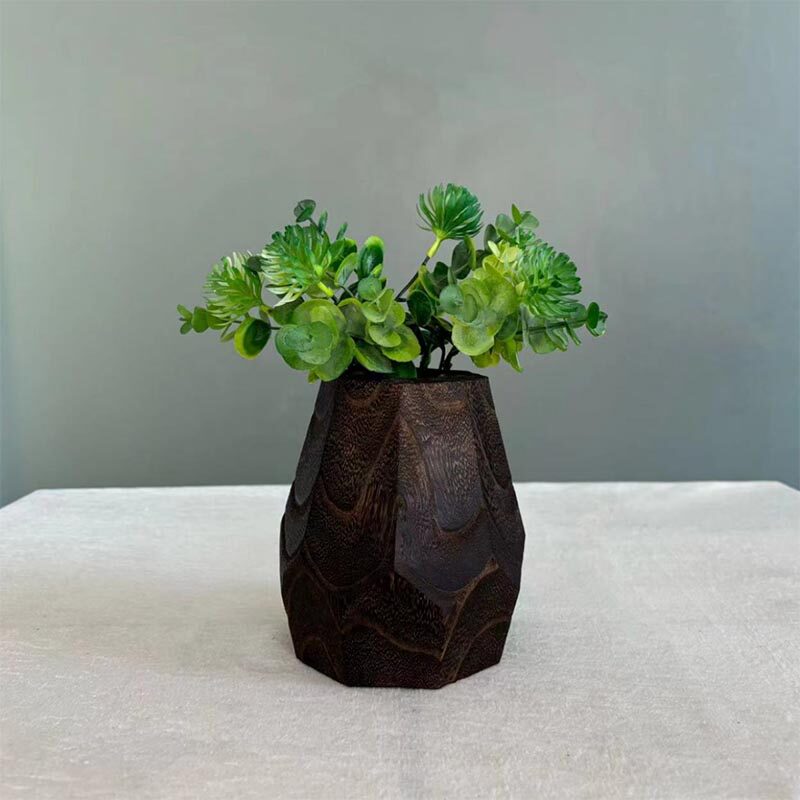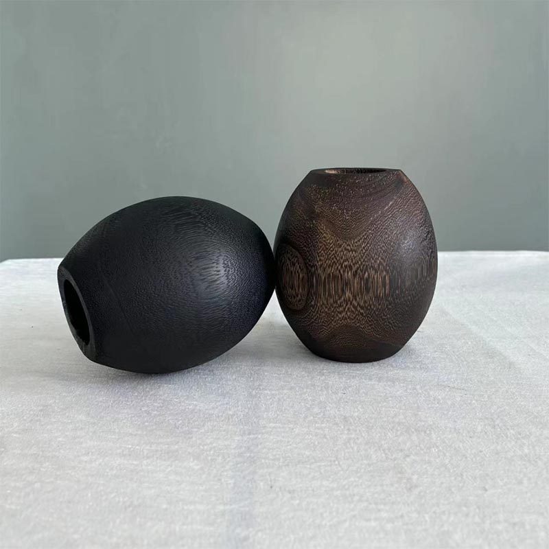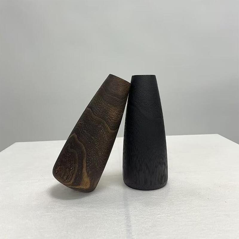 📚 新中式复古怀旧实木碳化色黑色原木小花瓶摆件样板间酒店民宿装饰