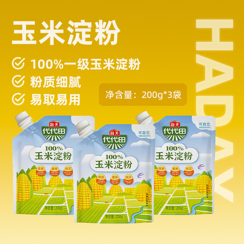 📚 海天玉米淀粉200g*3袋 生粉蛋糕面包厨房烘焙原料食用勾芡粉