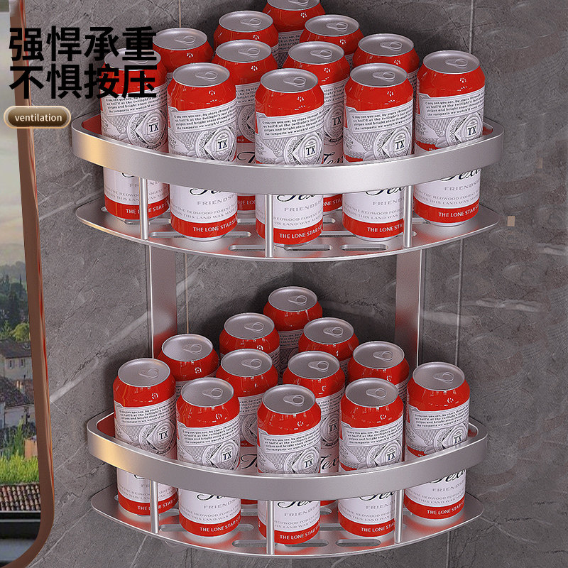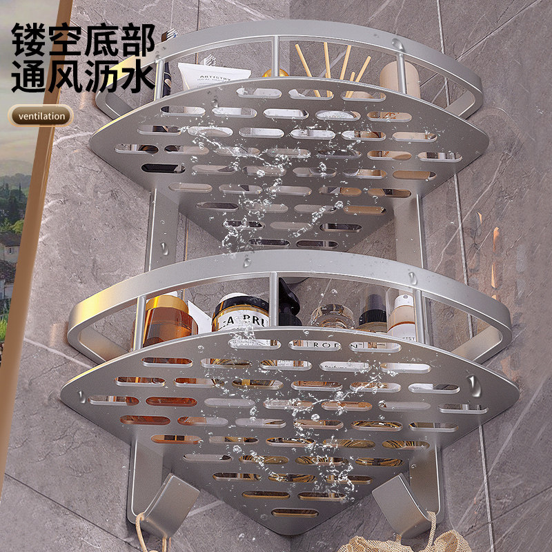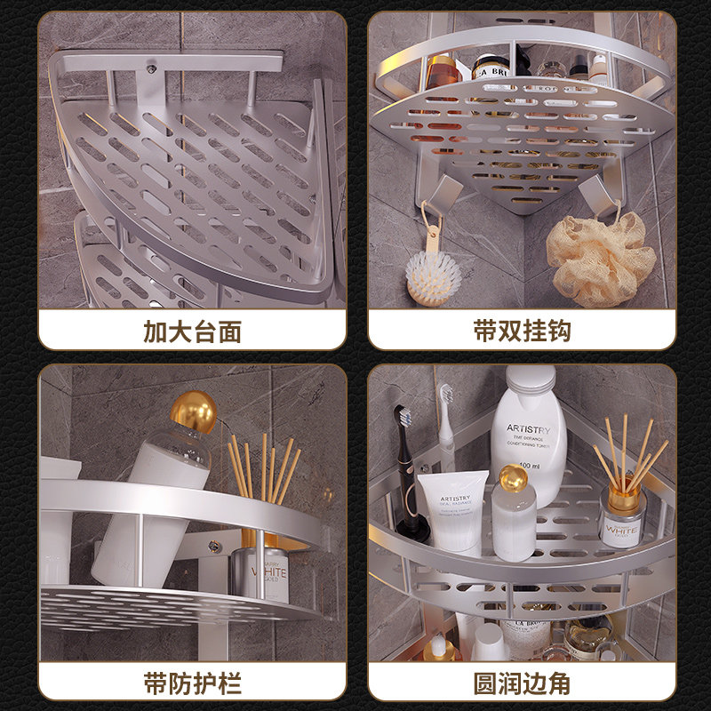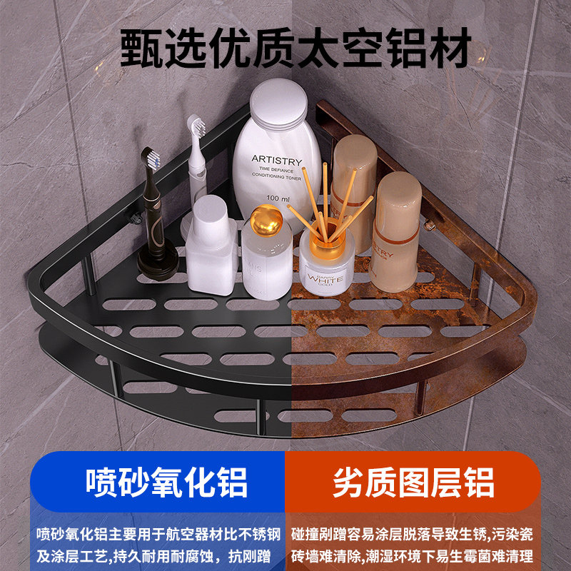 📚 太空铝卫生间置物架浴室三角架子厕所免打孔洗澡间壁挂墙角收纳架