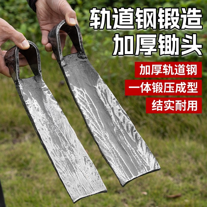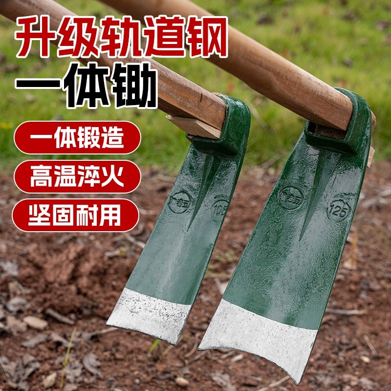 📚 轨道钢锻打锄头锄草老式农用挖硬土地翻土开荒一体木柄小锄头全钢
