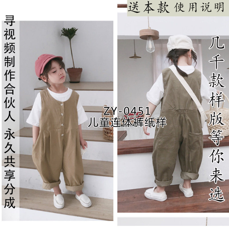 📚 ZY-0451 孩子连体裤纸样 男女童连衣服纸样 牛皮纸图纸 长裤纸样