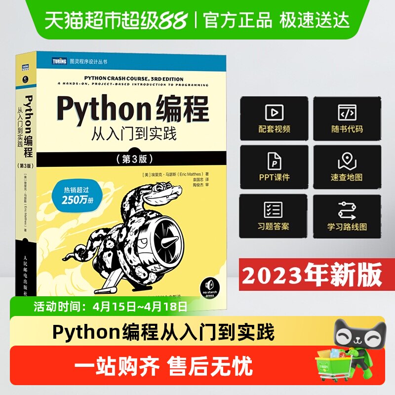27¥ HU293 vd2156xRL54¥ https://m.tb.cn/h.iK3GizT Python编程从入门到实践第3版语言编程序设计实战入门零基础自学 --------------------- 【原售价】69.8元 【现售价】34.2元。