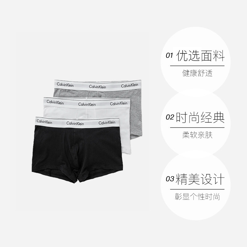 📚 【自营】Calvin Klein/凯文克莱男士平角内裤三件套 0000U2662G